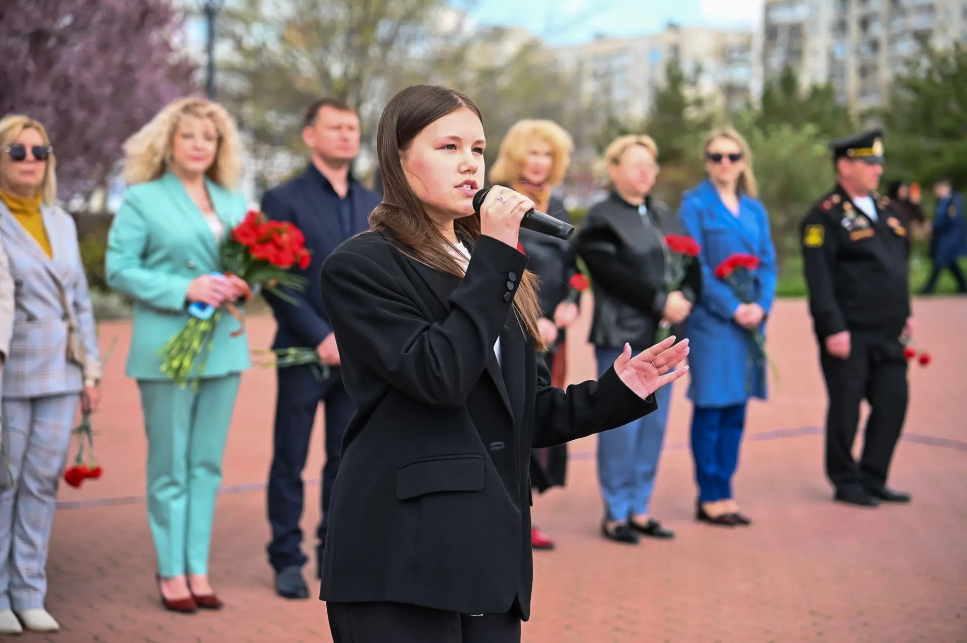 Участники мероприятия почтили память павших в годы войны минутой молчания, после чего возложили цветы к подножию памятника «Скорбящая мать».