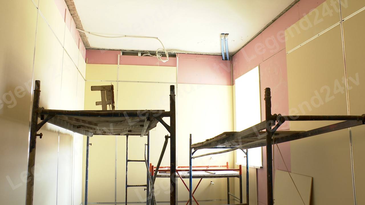Специалисты приступили к установке инженерных сетей - электричество, водоснабжение и вентиляционная система. параллельно проходят работы по отделке внутри здания - строители укладывают плитку и монтируют стеновые панели. Кроме этого, в медицинском учреждении появится лифт.