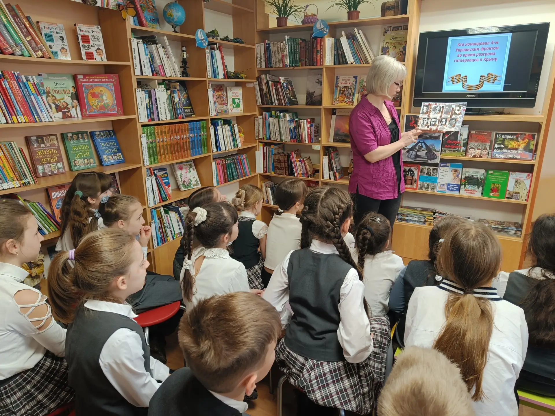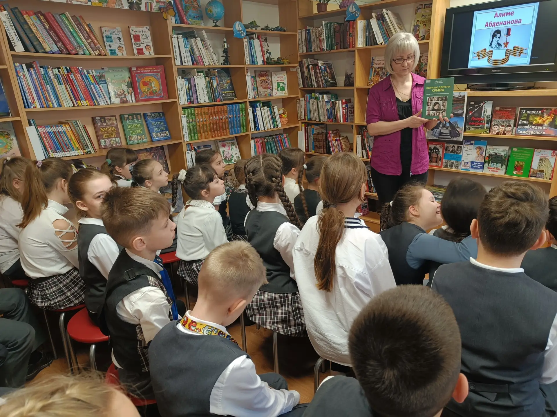 Участниками встречи стали ученики 3 класса школы №4 им. Ф. И. Толбухина. Ребята перенеслись в героическое прошлое города: узнали о жизни Симферополя в годы оккупации и о цене, которой досталась победа весной 1944 года. Особое впечатление произвели стихи Л. Фисейской и А. Милявского, а также видеопрезентация о героях, чьи имена носят улицы города - Леониде Тарабукине и Иване Генове. Важно, что материалы о героях были подготовлены самими читателями библиотеки.