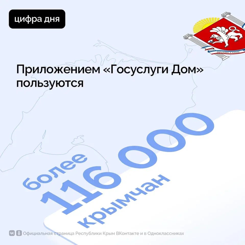 Приложение «Госуслуги Дом» является одним из самых востребованных сервисов в сфере ЖКХ его установили уже более 116 тысяч крымчан