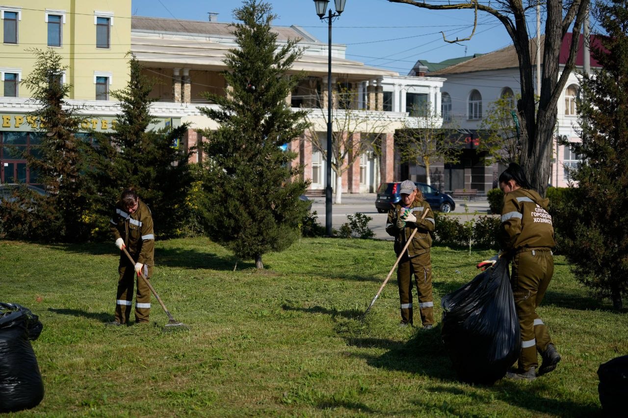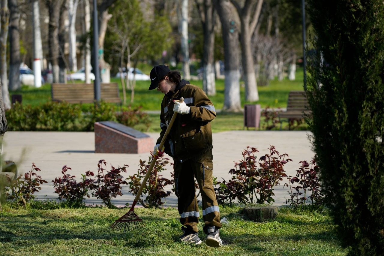Помимо бригад в красных жилетах, в парках и скверах курсируют 4 вакуумные подметально-уборочные машины. Также техника очищает тротуары и пешеходные аллеи.