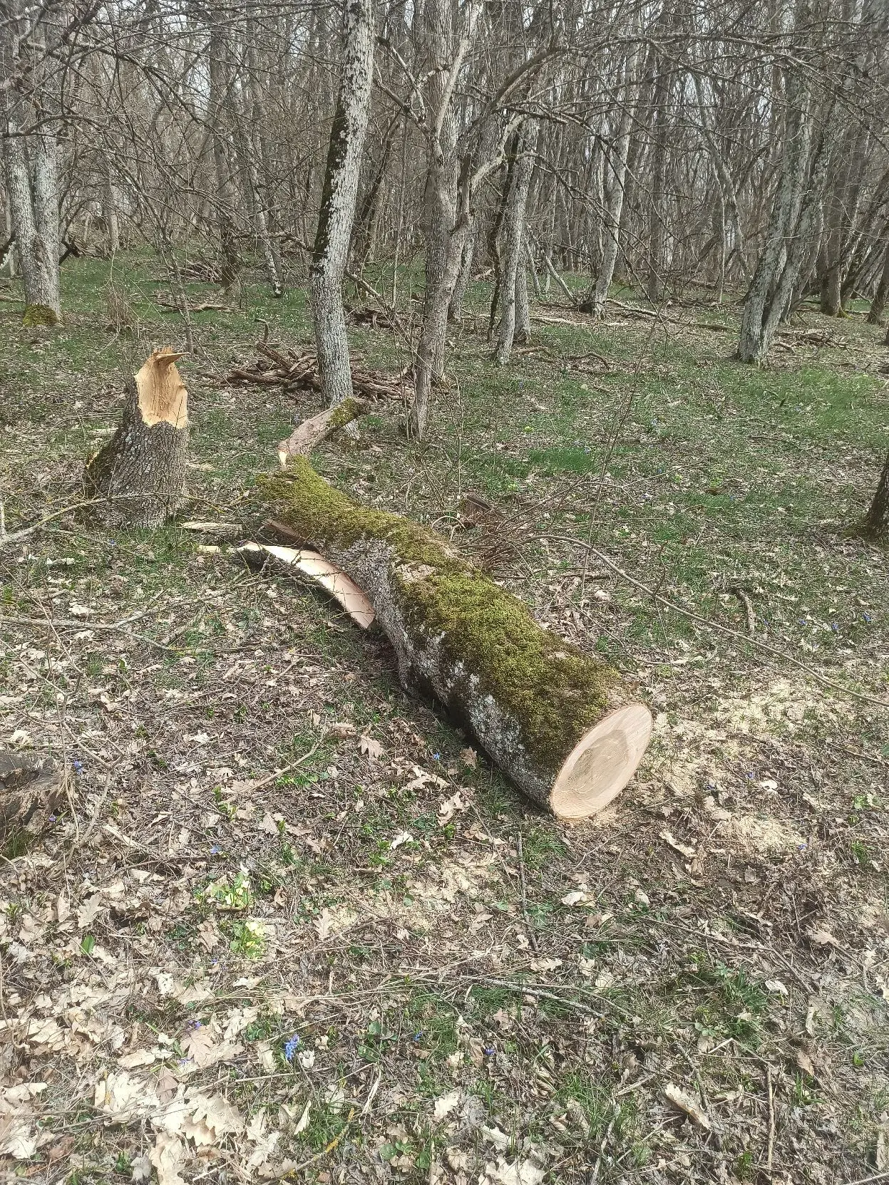 Валежник: лежит на земле, нет следов спила или рубки, полностью отделён от корня.
