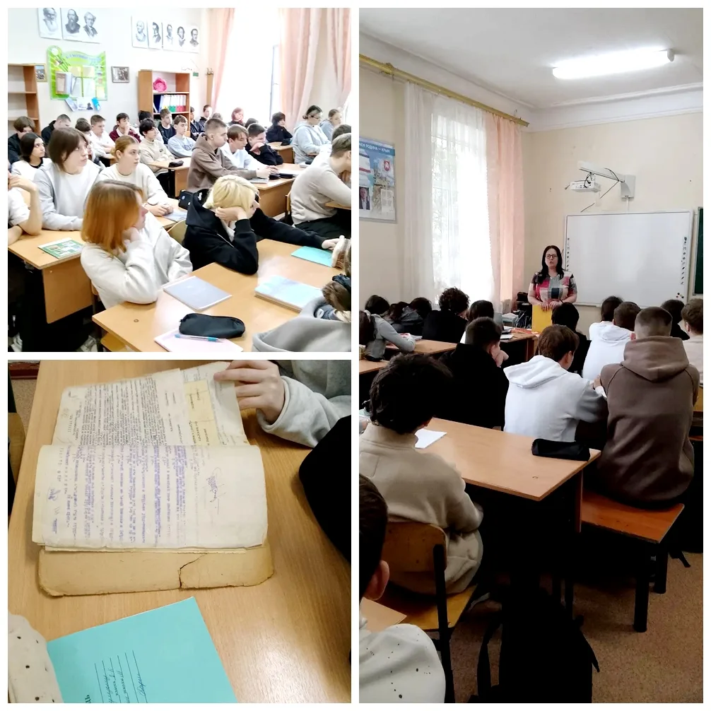 Информационно-тематический урок для учащихся МБОУ «Средняя школа № 1 имени Героя Советского Союза Максима Губанова города Евпатории Республики Крым» провели главные специалисты отдела по работе с документами по личному составу архива Юлия Горюнова и Анжелика Арциховская.