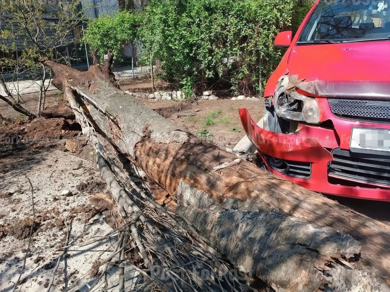 Сухое дерево завалилось на две легковушки в Севастополе – они получили повреждения.