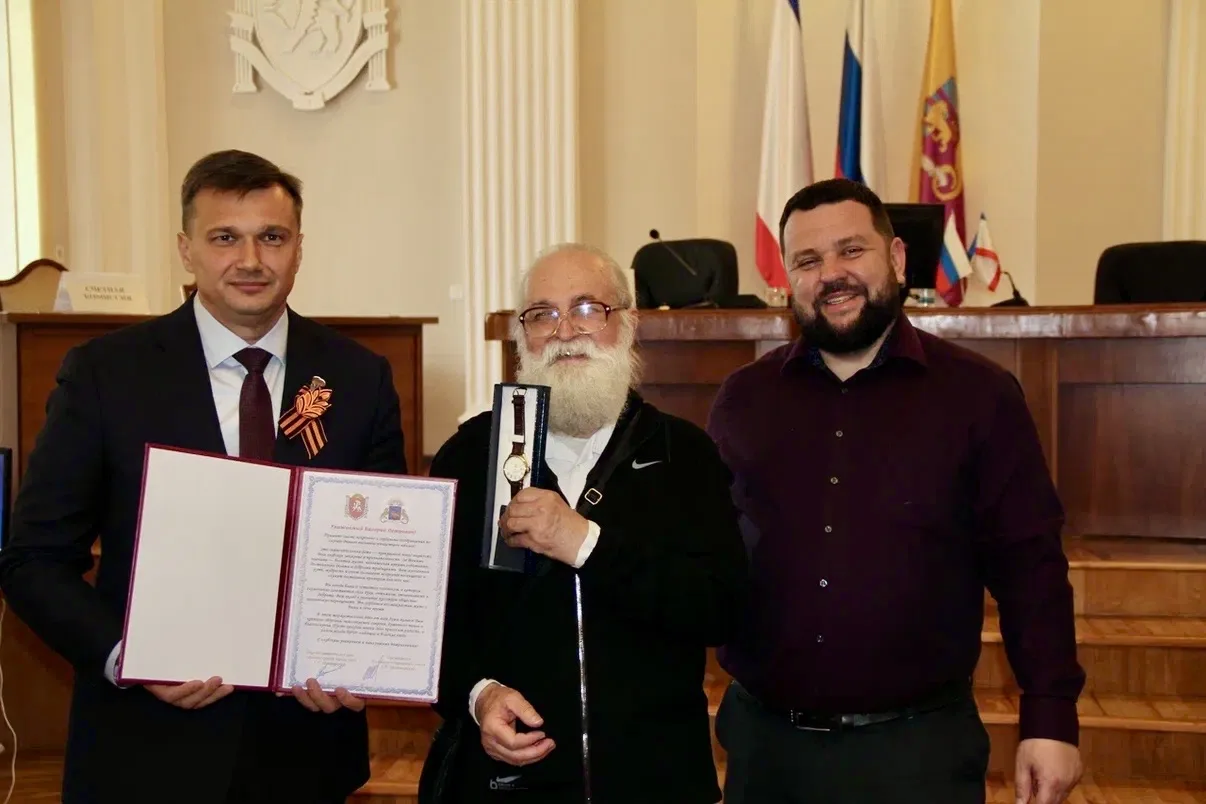 Вместе с первым заместителем главы администрации Сергеем Сергеевичем Олефиренко вручили ценный подарок Администрации за добросовестный труд, высокий профессионализм, личный вклад в развитие культуры на территории муниципального округа и по случаю 80-летнего юбилея художнику живописцу, члену Союза художников России, члену Союза писателей Крыма Валерию Петровичу Мухину.