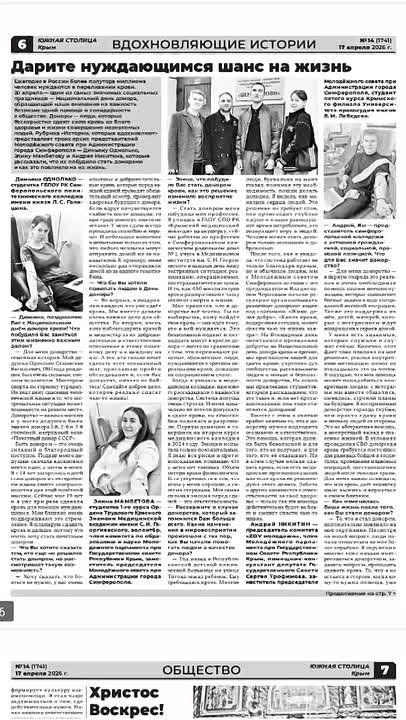 Сегодня, 17 апреля, вышел новый номер городской общественно-политической газеты «Южная столица Крым».