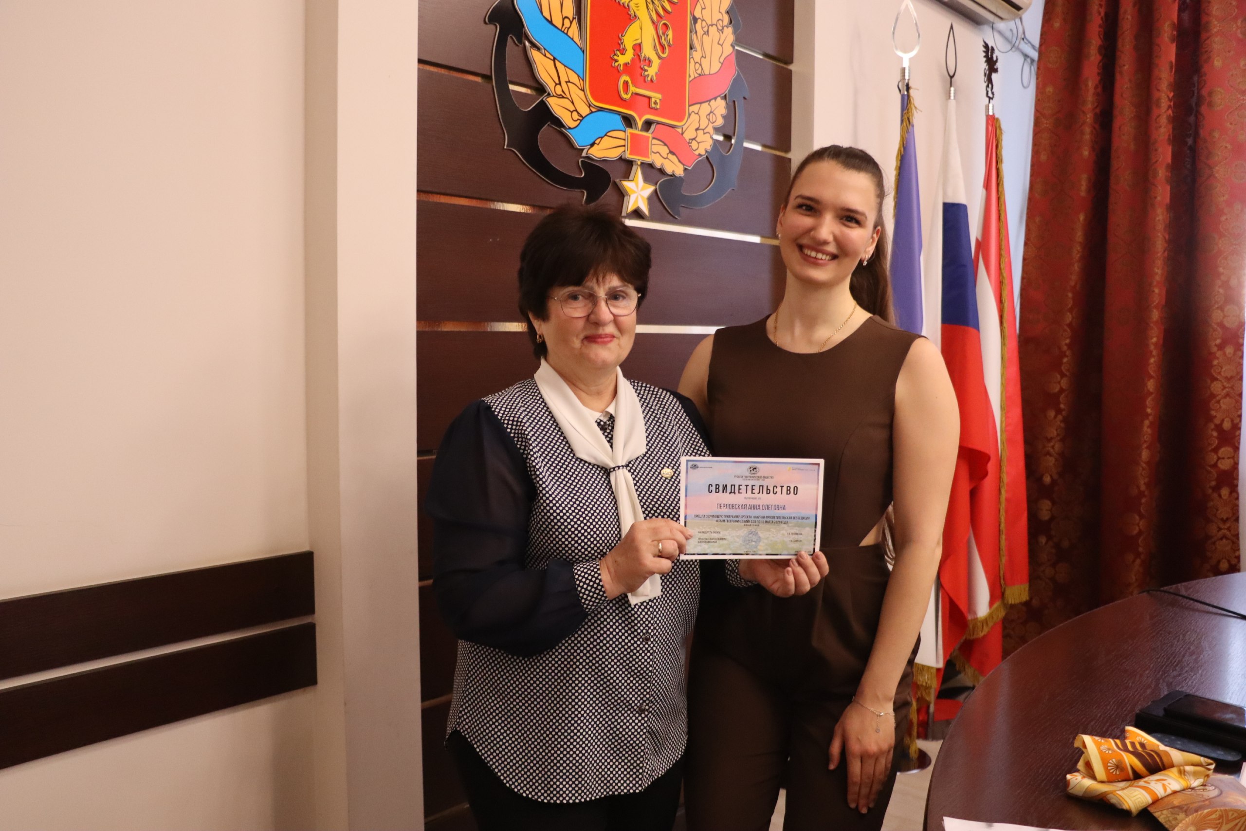На встрече в администрации города председатель отделения Людмила Шишло вручила удостоверения новым членам РГО.