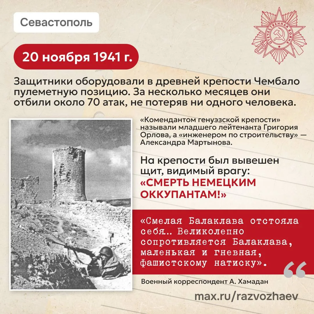 Оборона башни Чембало стала примером невероятного мужества, рассказал губернатор Севастополя Михаил Развожаев.