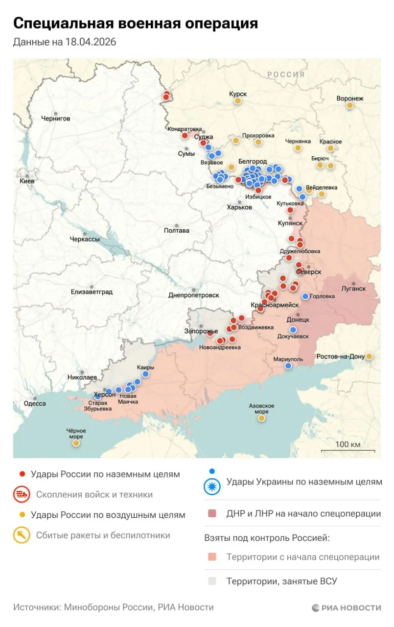 за 18 апреля 2026 годаРоссийские войска в течение суток нанесли серию ударов по энергоузлам в Черниговской и Днепропетровской области. Также серия взрывов прозвучала в окрестностях одесских портов.Противник атаковал беспилотниками объекты нефтяной...