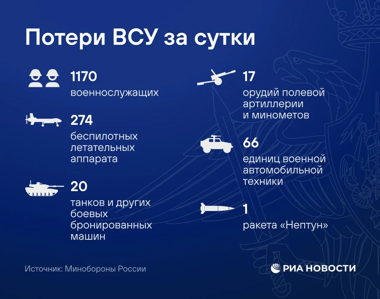 В течение прошедшей ночи с 20.00 мск 20 апреля до 07.00 21 апреля дежурными средствами ПВО перехвачены и уничтожены 97 украинских беспилотных летательных аппаратов самолетного типа над территориями Астраханской, Белгородской...