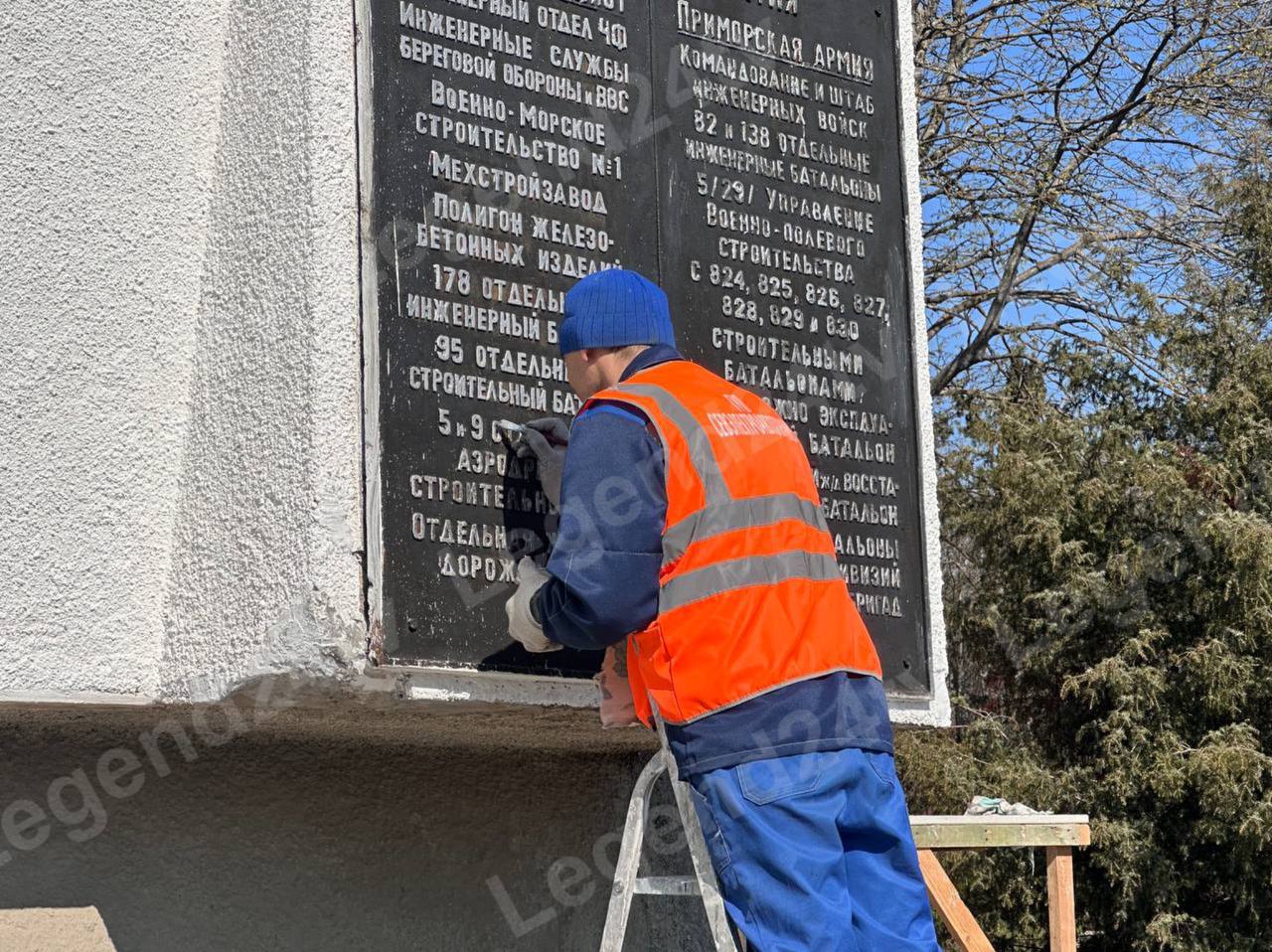 Специалисты убирают мусор, окрашивают буквы и белят памятник. На объекте работают второй год подряд.