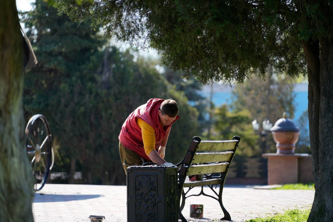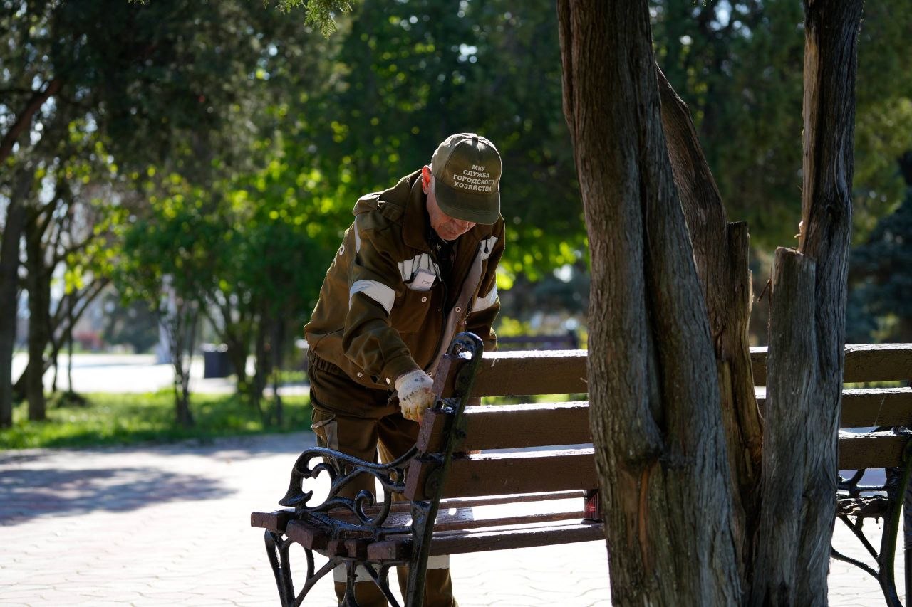 Служба городского хозяйства продолжает наводить порядок на общественных территориях Керчи. Сейчас работы сосредоточены в центре города: в скверах Славы и Мира. Специалисты завершают окрашивание скамеек. Ранее подобные работы были выполнены в скверах Чернобыльцев и Афганцев.