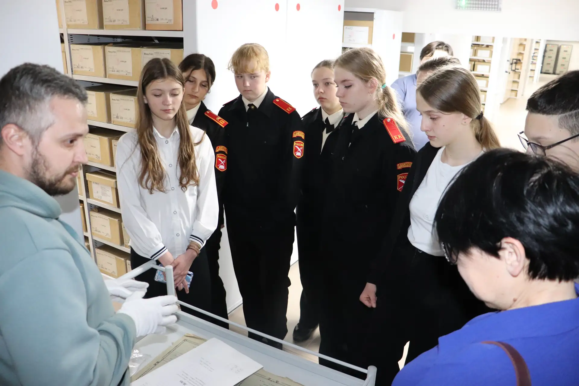 В ходе знакомства с деятельностью Госархива ребята узнали о деятельности крымских архивистов на протяжении 107-летней истории с начала его работы, становлении архивной системы полуострова, условиях хранения исторических документов, выполнении важных архивных задач по комплектованию архива, обеспечению сохранности, учету, использованию и популяризации архивных документов. Школьники побывали в архивохранилище, смогли проучаствовать в оцифровке архивных документов, узнали о работе с электронным фондом пользования в читальном зале, правилах работы читальных залов Госархива, возможностях изучения истории своей семьи, рода, понаблюдали за реставрацией архивных дел, ознакомились с архивным каталогом, получили представление об электронных базах данных, поговорили об использовании архивных документов при подготовке работ для проводимого Государственным комитетом по делам архивов Республики Крым конкурса «Судьба моей семьи в судьбе моей страны».