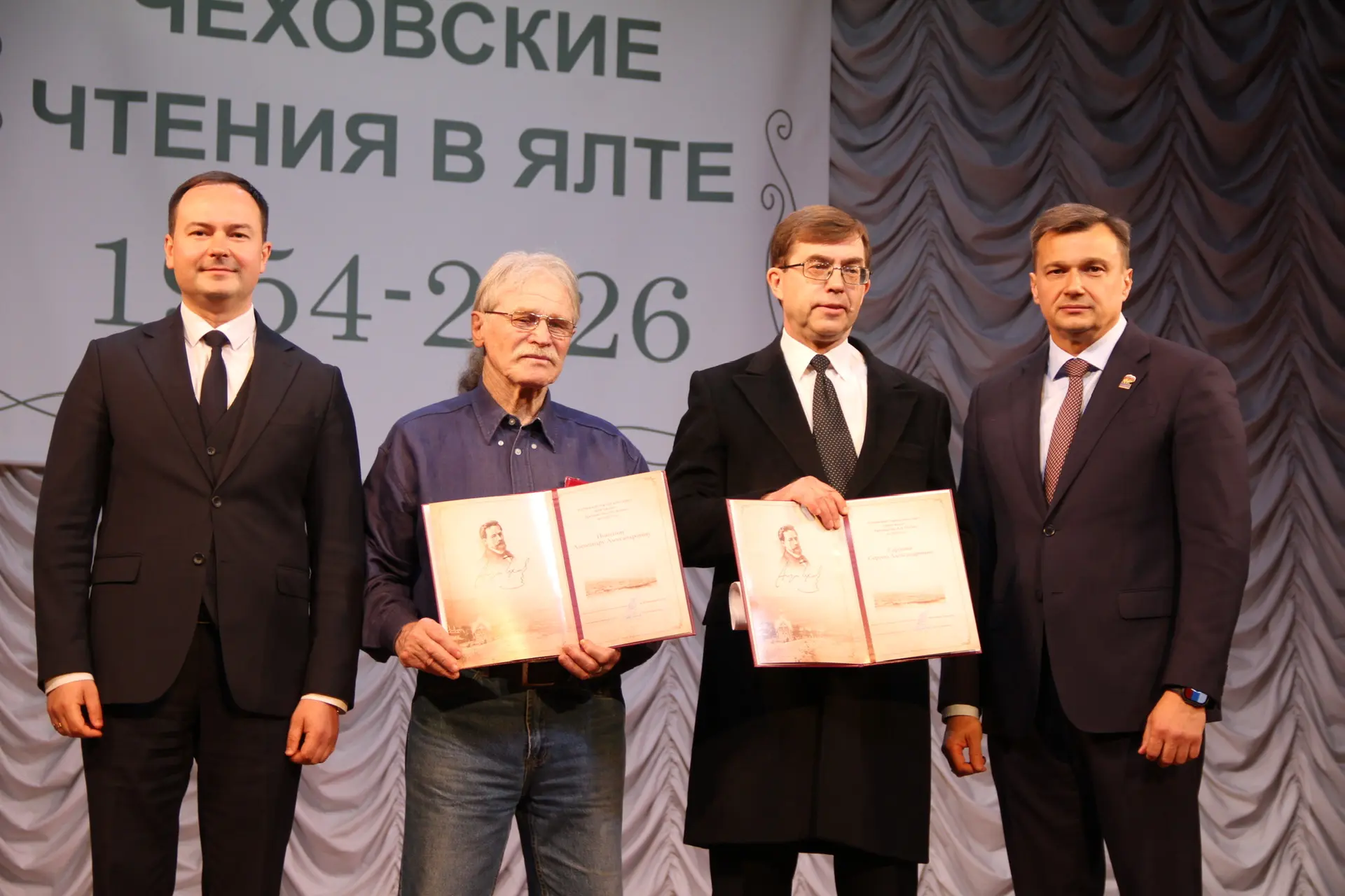Добрая традиция мероприятия - вручение премии Ялтинского городского совета им. А. П. Чехова. За 2025 год она присуждена главному редактору газеты Ялта Сергею Александровичу Сардыко и члену Союза писателей Крыма Александру Александровичу Никитину.