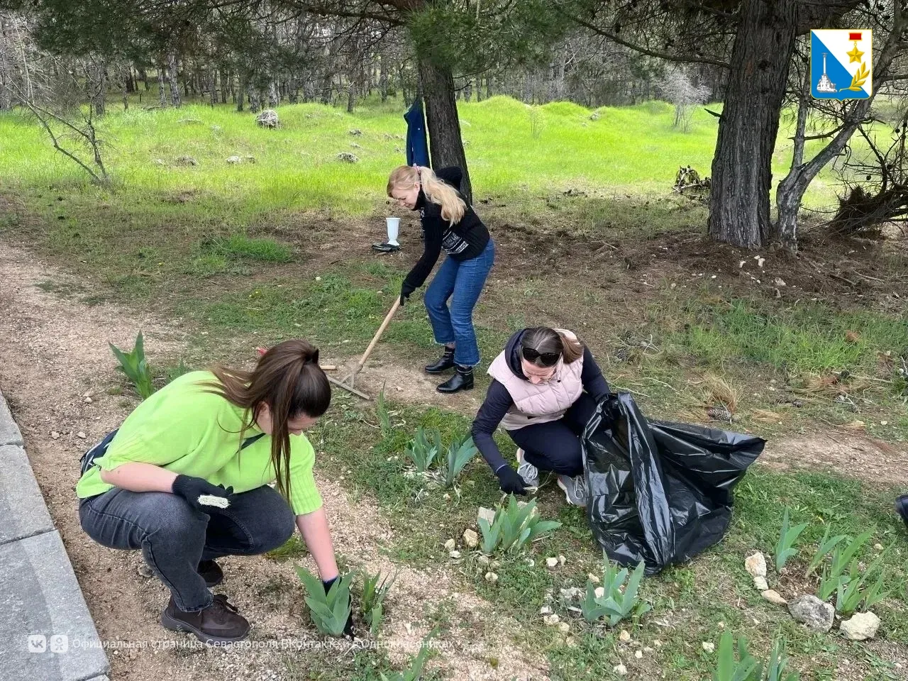 Участники субботника собрали мусор, подмели дорожки, покрасили бордюр и обновили покрытие на символической звезде.