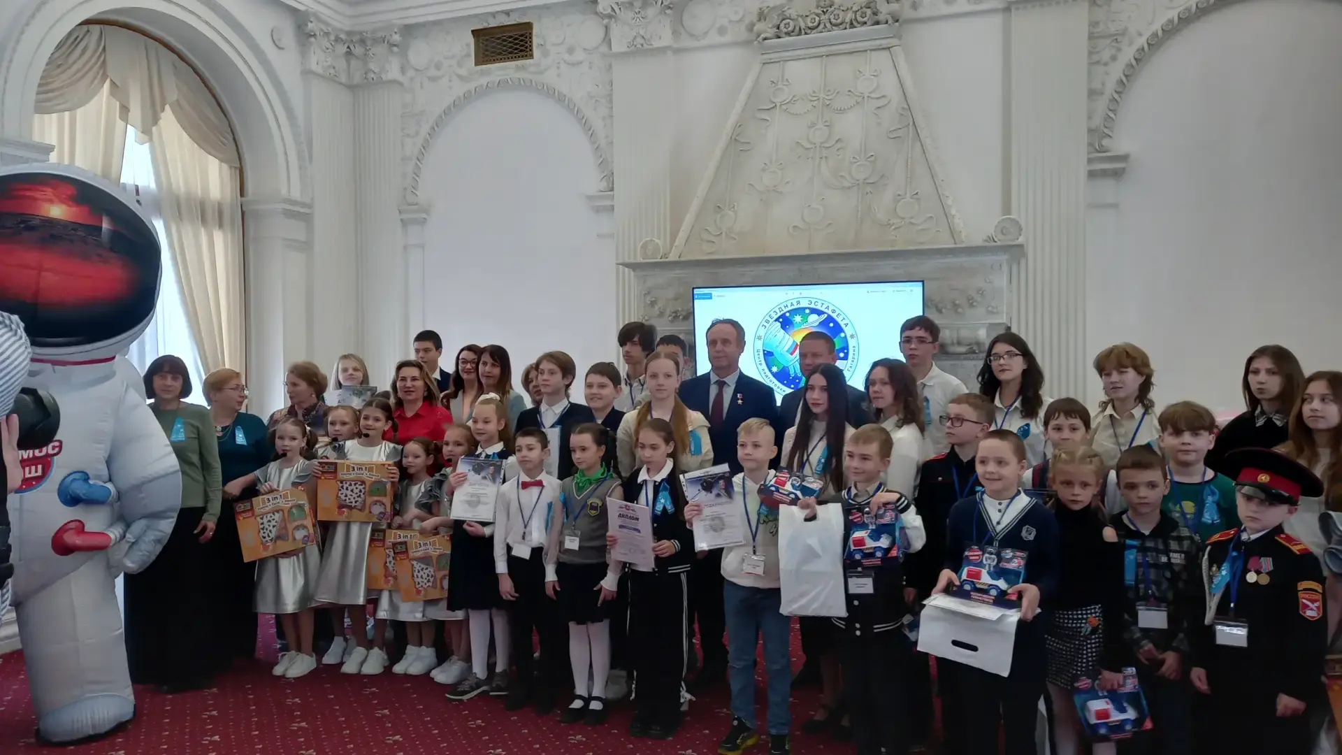 Герой России, лётчик-космонавт Сергей Залётин лично выступил перед ребятами, а самым трогательным событием стало видеообращение экипажа МКС-74 к участникам проекта «Письмо-поздравление космическому экипажу МКС-74 с Новым 2026 годом».