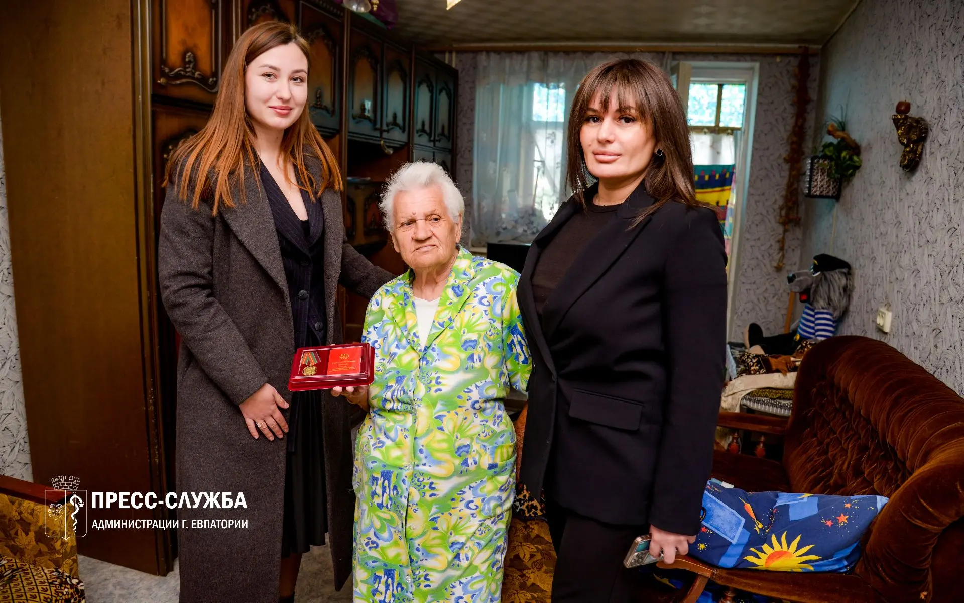 На дому ветеранов поздравили заместитель главы администрации Евпатории Валерия Симакова и депутаты Евпаторийского городского совета Яна Бузинская и Анна Войтенко.