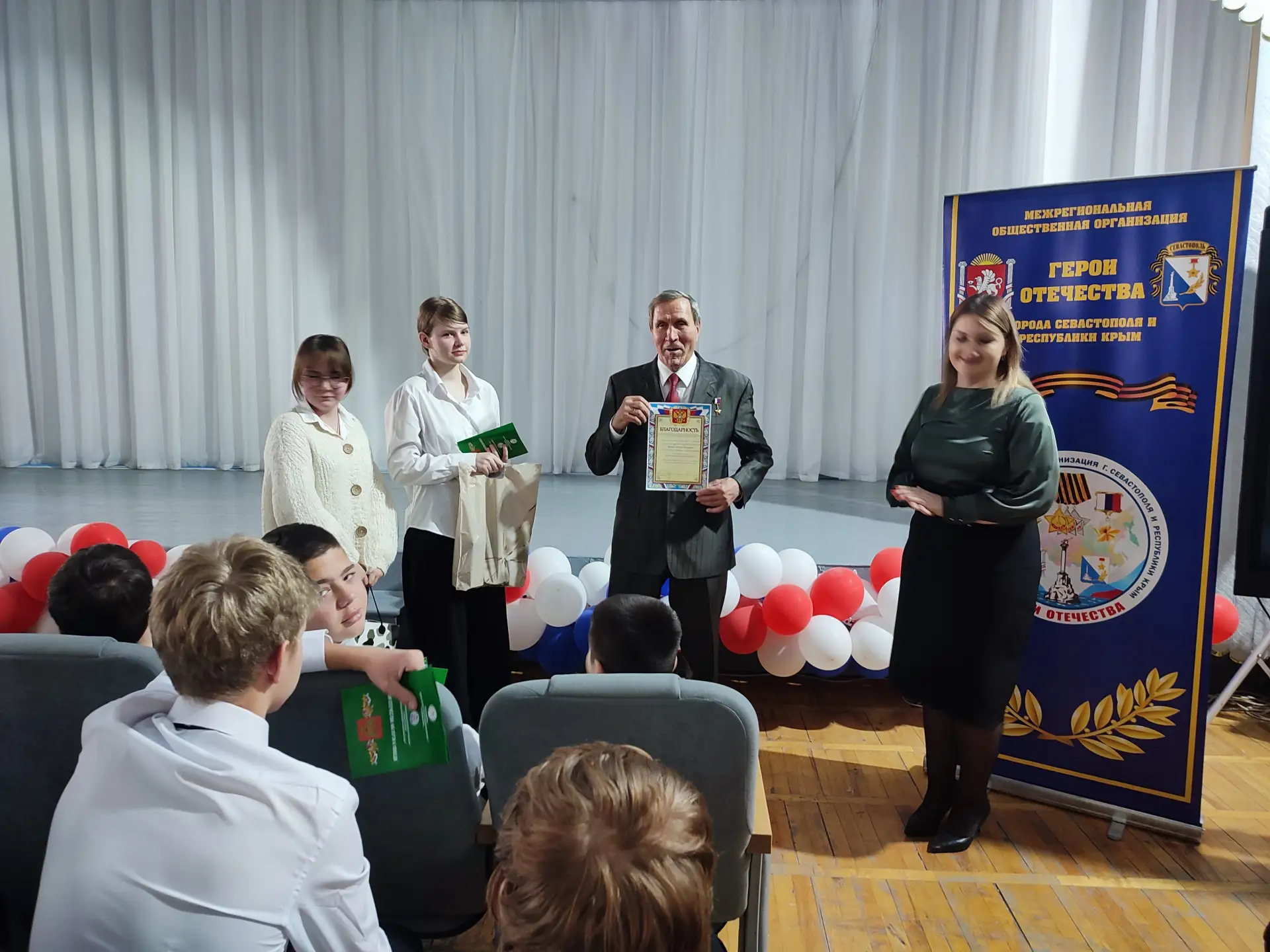 Встреча с учениками младших и старших классов прошла в рамках программы «Герои Отечества. На пути к Победе!», направленной на патриотическое воспитание школьников Республики Крым.