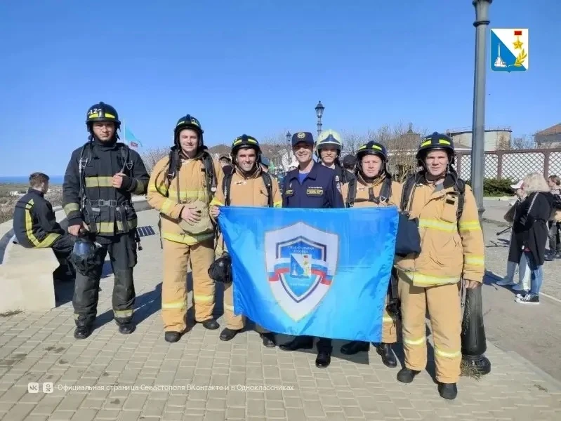 Участники преодолели почти 800 ступеней на мысе Фиолент в полной боевой экипировке — в пожарной одежде и с аппаратами для защиты дыхания и зрения.