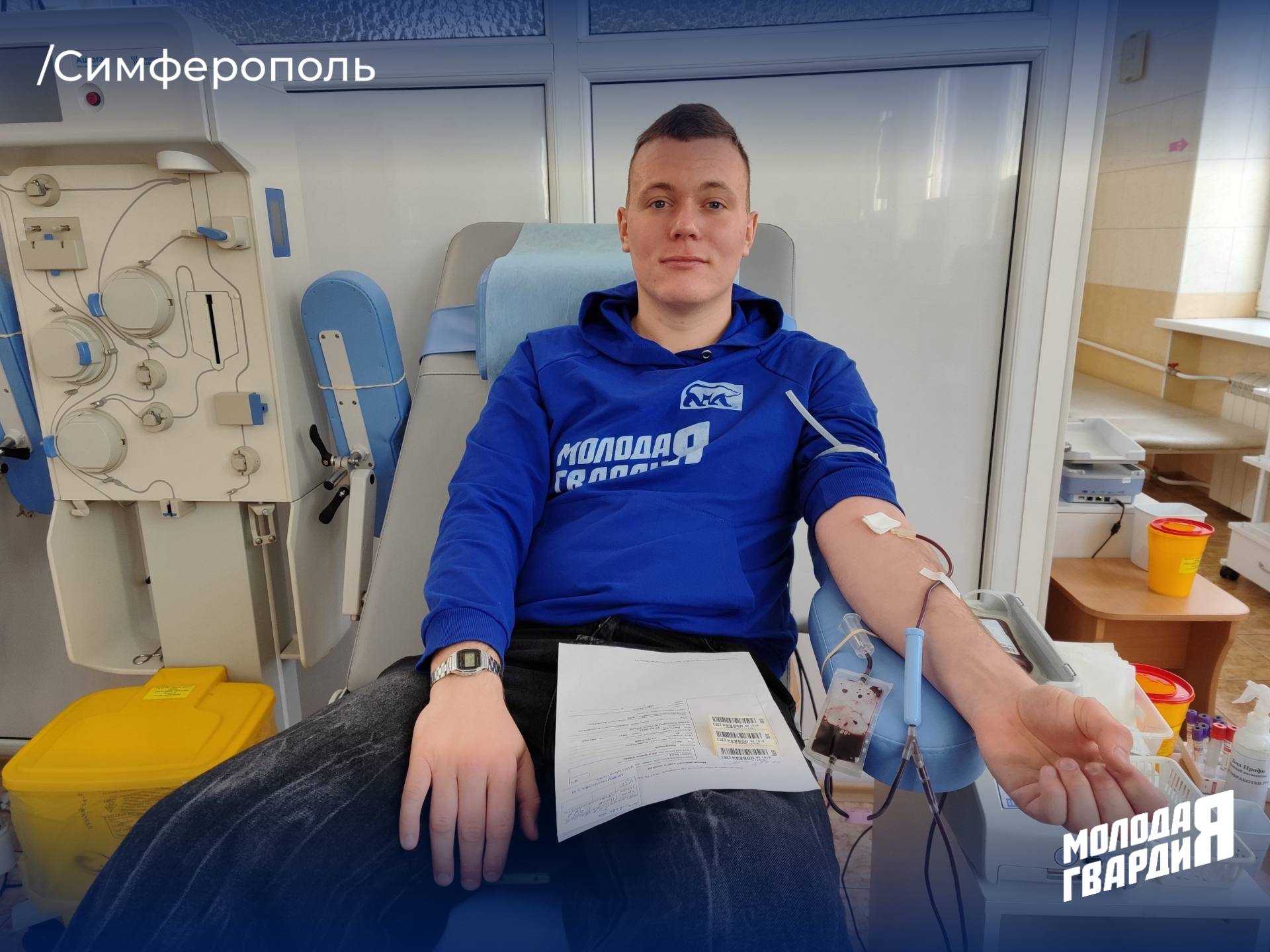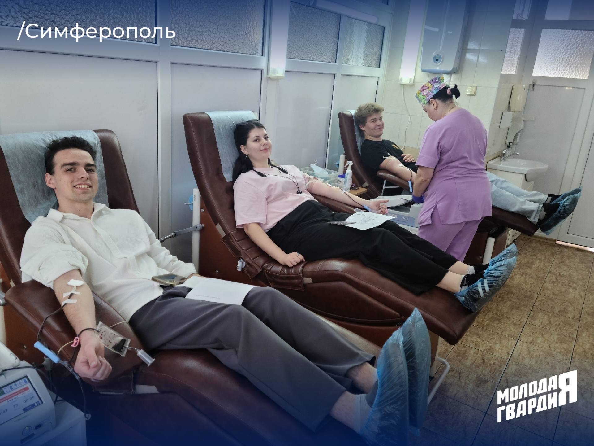 Сегодня молодогвардейцы Симферопольского местного отделения приняли участие в важной и благородной акции — сдаче крови в честь Всемирного дня донора.