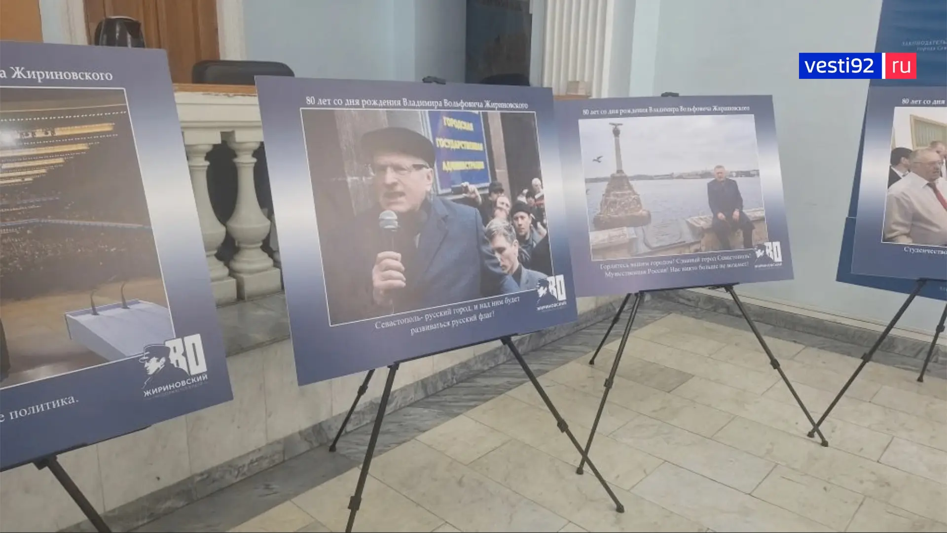 В Законодательном Собрании Севастополя открывается фотовыставка, посвященная 80летию со дня рождения Владимира Жириновского. Экспозиция проводится в рамках указа Президента о праздновании этой даты.