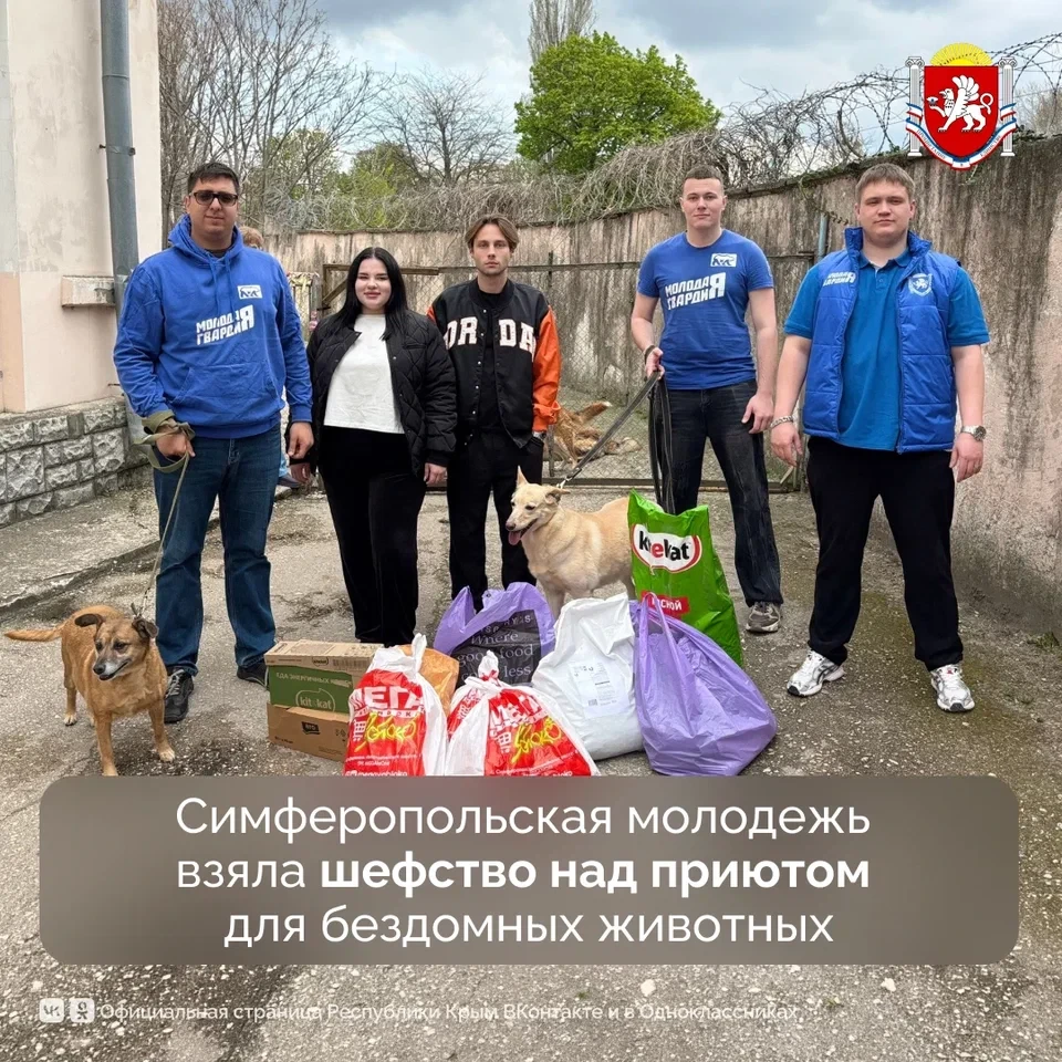 В Симферополе активисты местного отделения «Молодой Гвардии» навестили питомцев приюта для бездомных животных «Верный друг», которому оказывают регулярную помощь