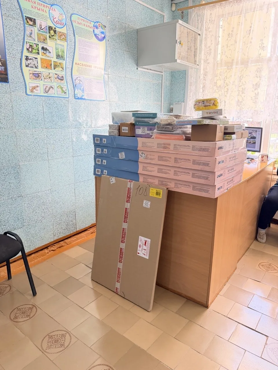 установить массажные кресла в школьном фойе.