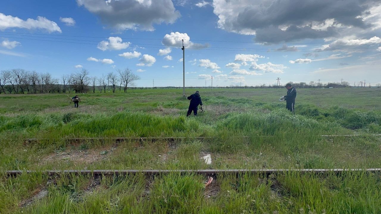 В Керчи продолжается уборка межквартальных пространств. Отдельное внимание уделяется полосам отвода железных дорог.