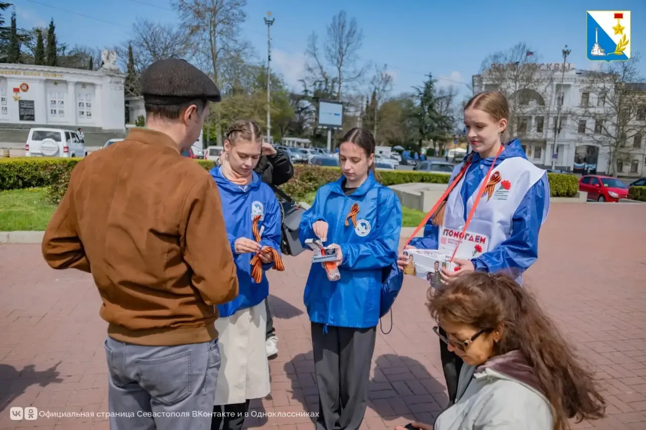 Затем добровольцы отправились на площади Нахимова, Ушакова, Лазарева, Приморский бульвар и набережную Корнилова, чтобы раздать первые ленты.