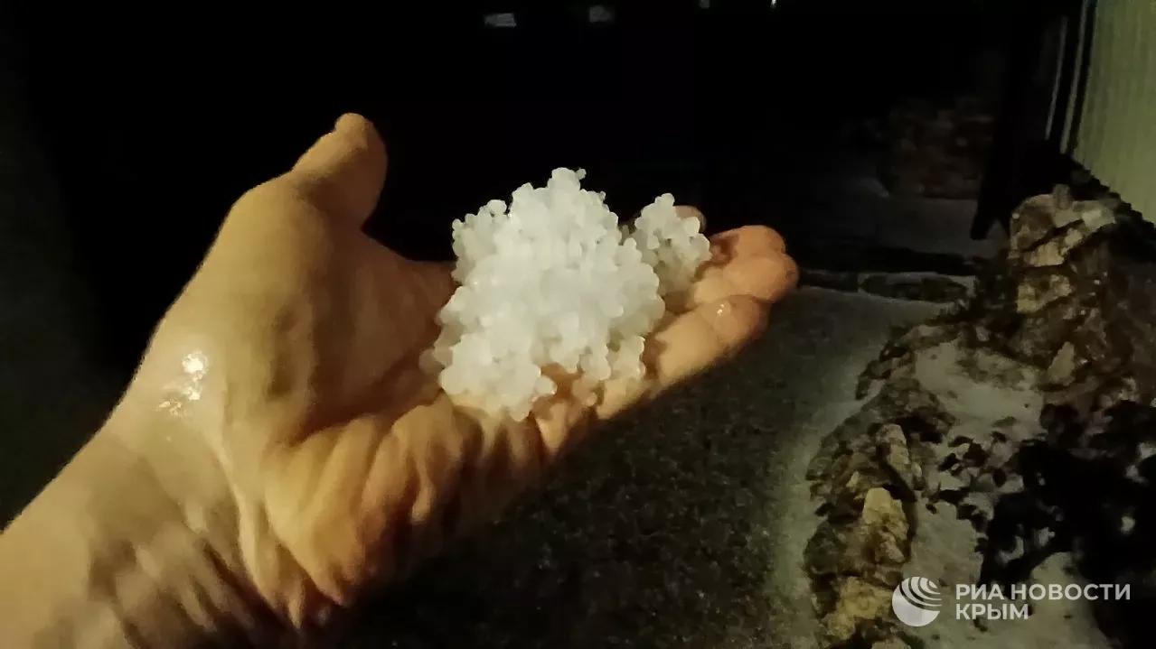 Мощный ливень с грозой и градом обрушился на Крым.