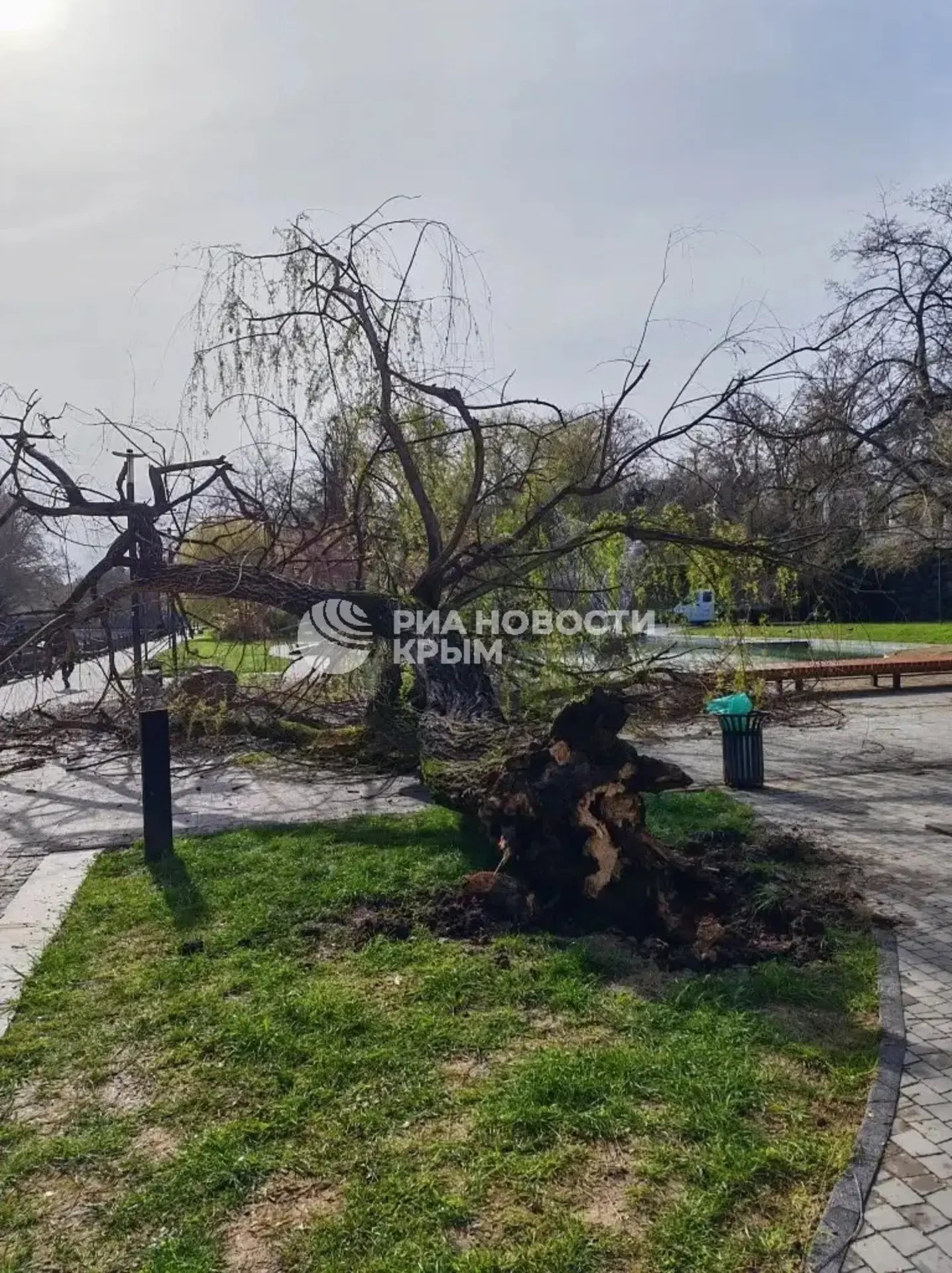 Дерево вырвано с корнем: последствия вчерашней непогоды в Симферополе.
