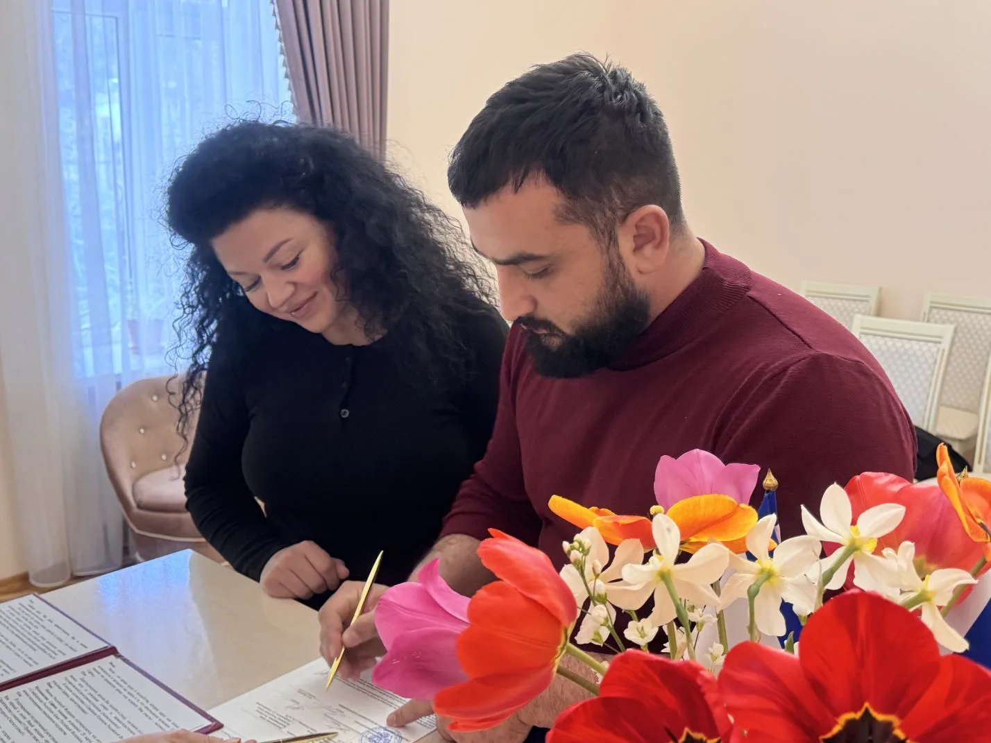 Торжественный обряд имянаречения прошел под звуки красивой мелодии, а букет ароматных цветов напоминал о весне – самом прекрасном времени года.
