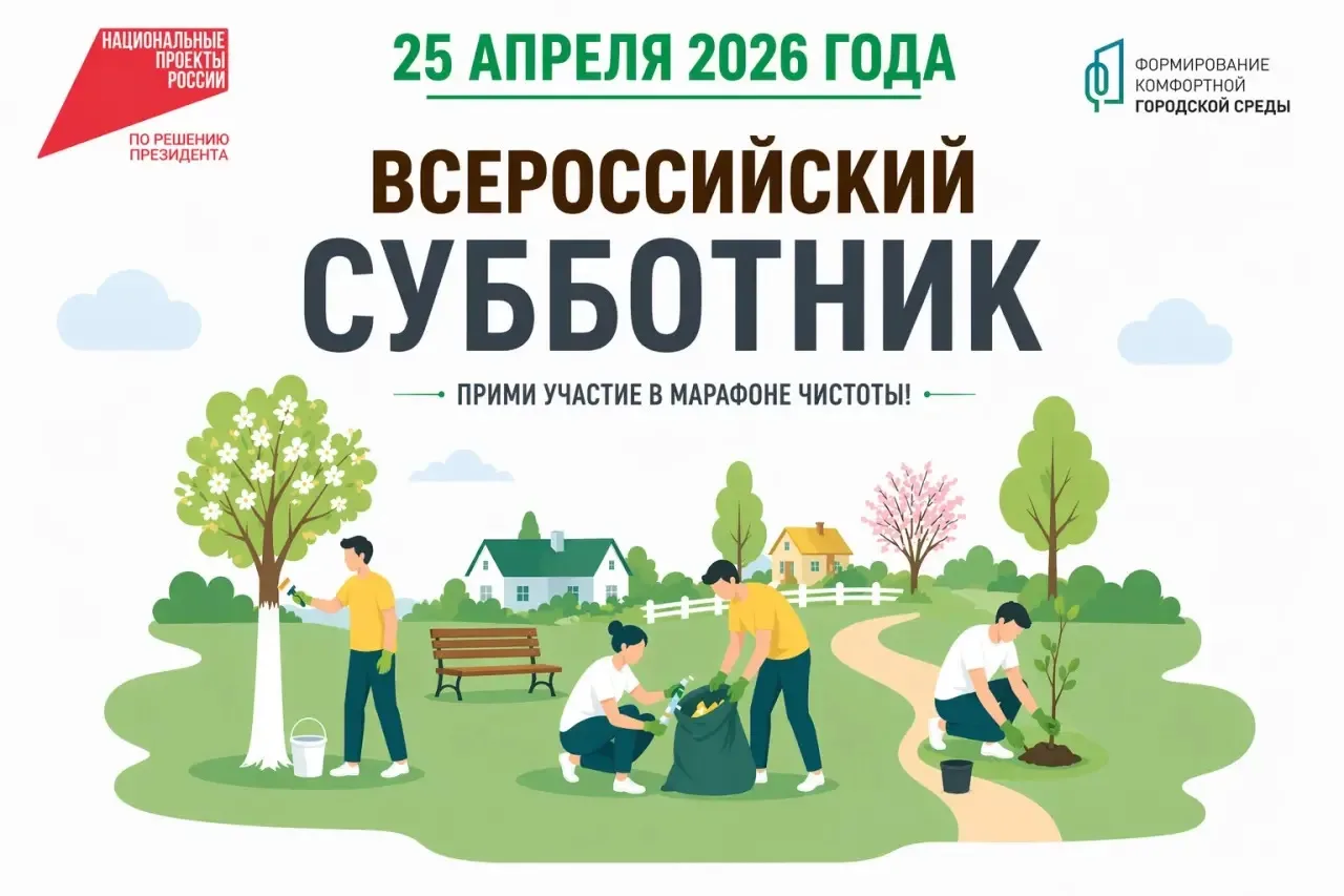 Субботник проводится в рамках федерального проекта «Формирование комфортной городской среды» национального проекта «Инфраструктура для жизни».