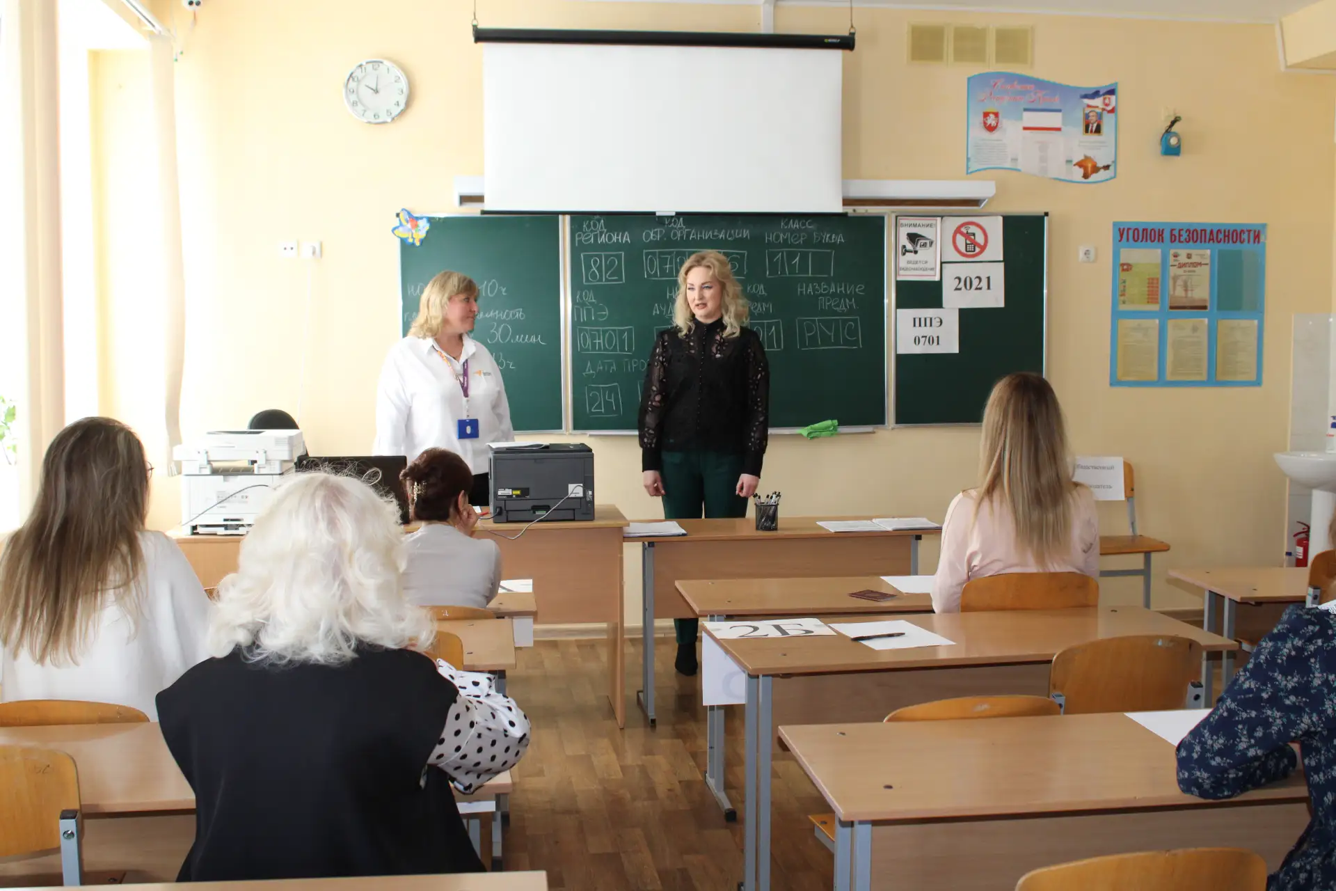 Для проведения пробного испытания были в полном объеме соблюдены все организационные процедуры Единого государственного экзамена. Участники прошли через регистрацию, проверку документов и личных вещей с использованием металлодетектора. В экзаменационном кабинете была обеспечена тишина, зачитан инструктаж, а на доске наглядно продемонстрирован порядок заполнения бланков.