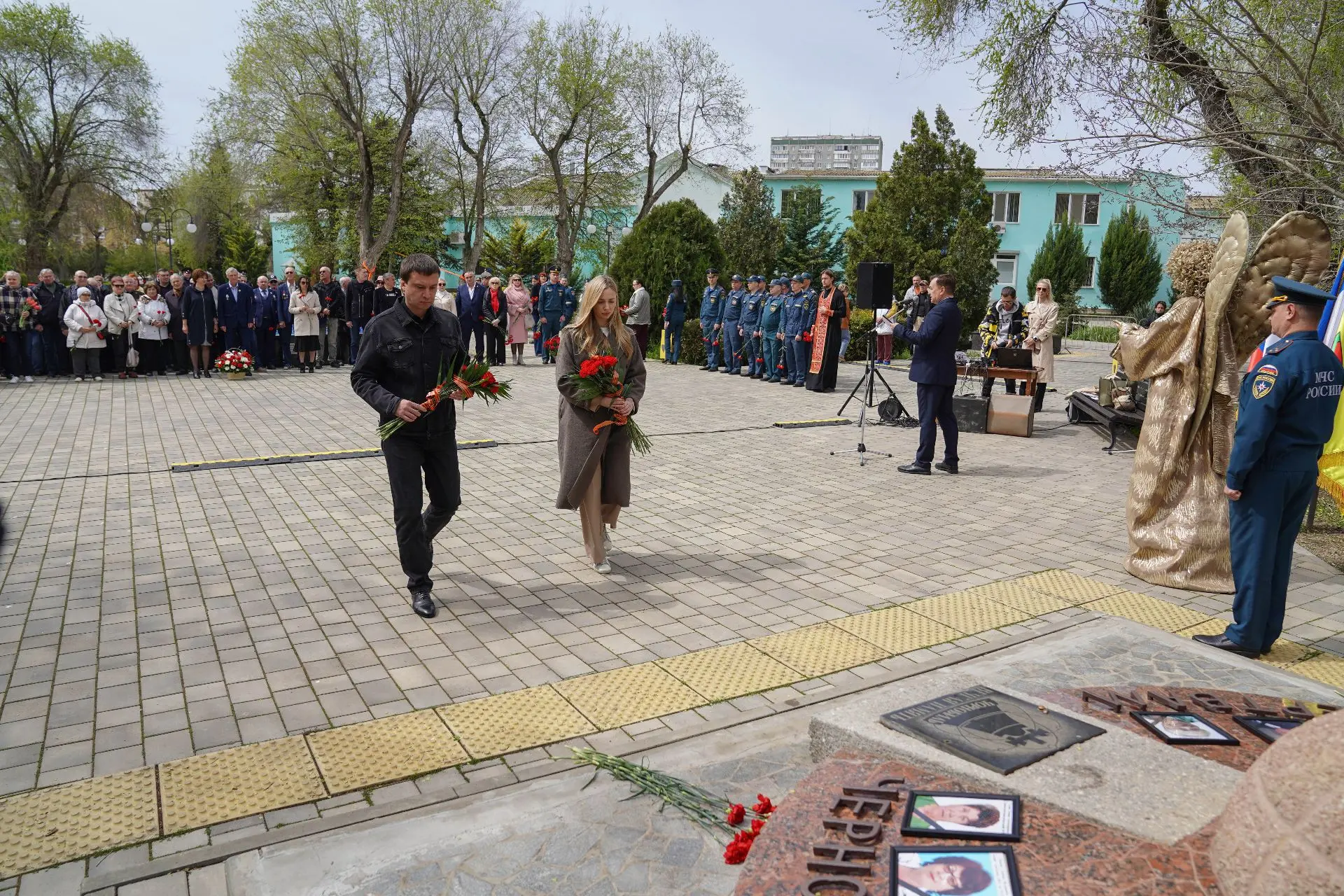 Собравшиеся почтили всех погибших минутой молчания, а затем была проведена панихида, после чего состоялось возложение цветов к памятникам.