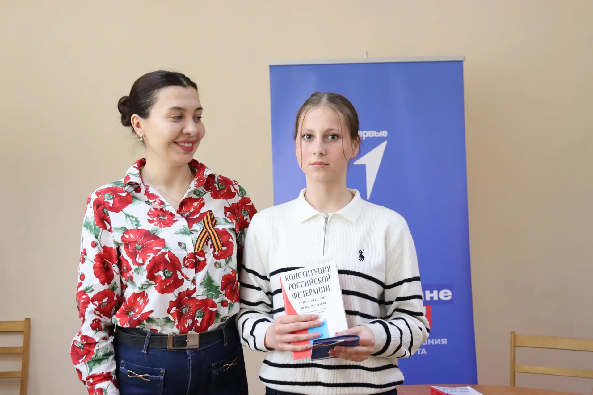 На память каждый участник церемонии получил обложку на паспорт и значок с символикой «Движения Первых», а также Конституцию Российской Федерации.