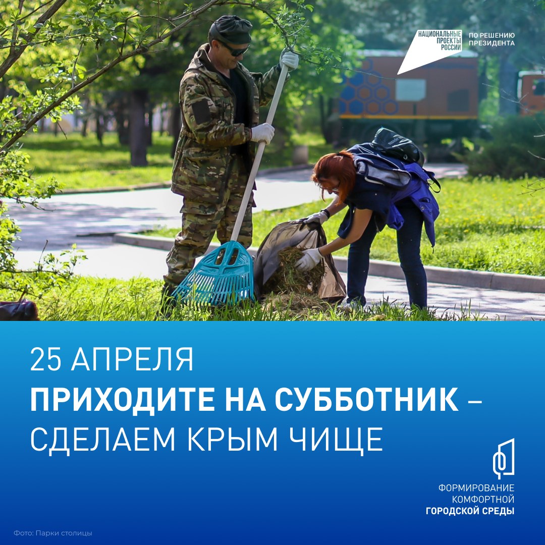Завтра, 25 апреля, крымчан приглашают присоединиться к всероссийскому субботнику