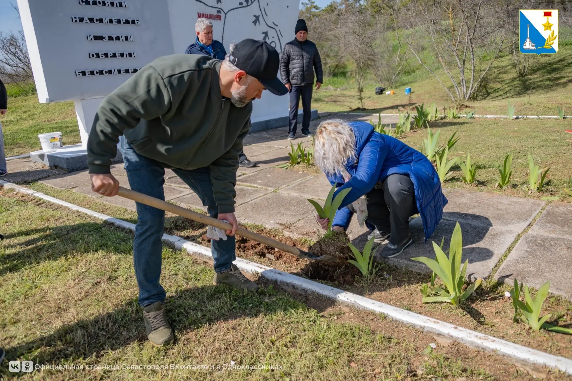 Сотрудники Управления спорта привели в порядок памятник воинам 8-й бригады морской пехоты в Верхнесадовом