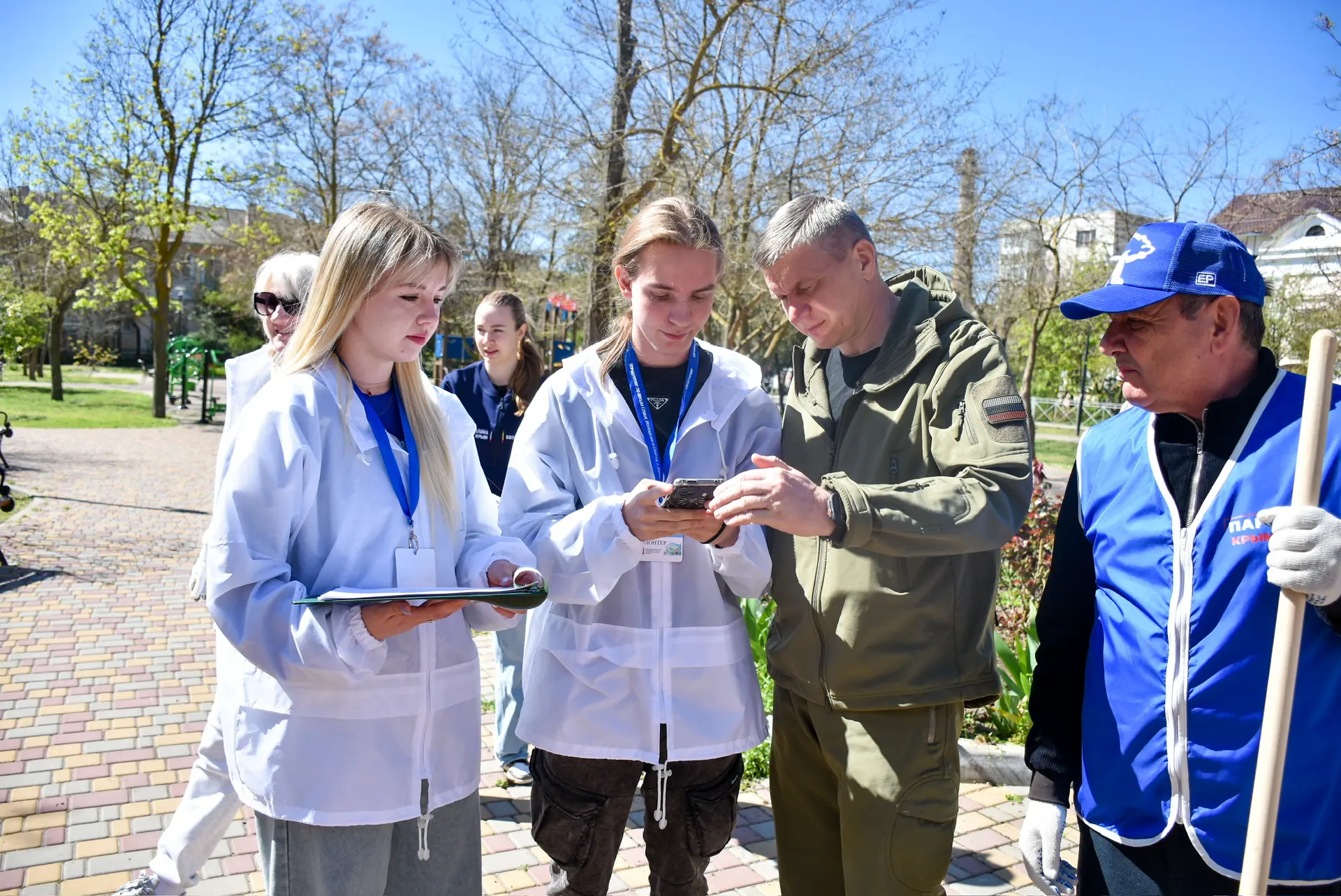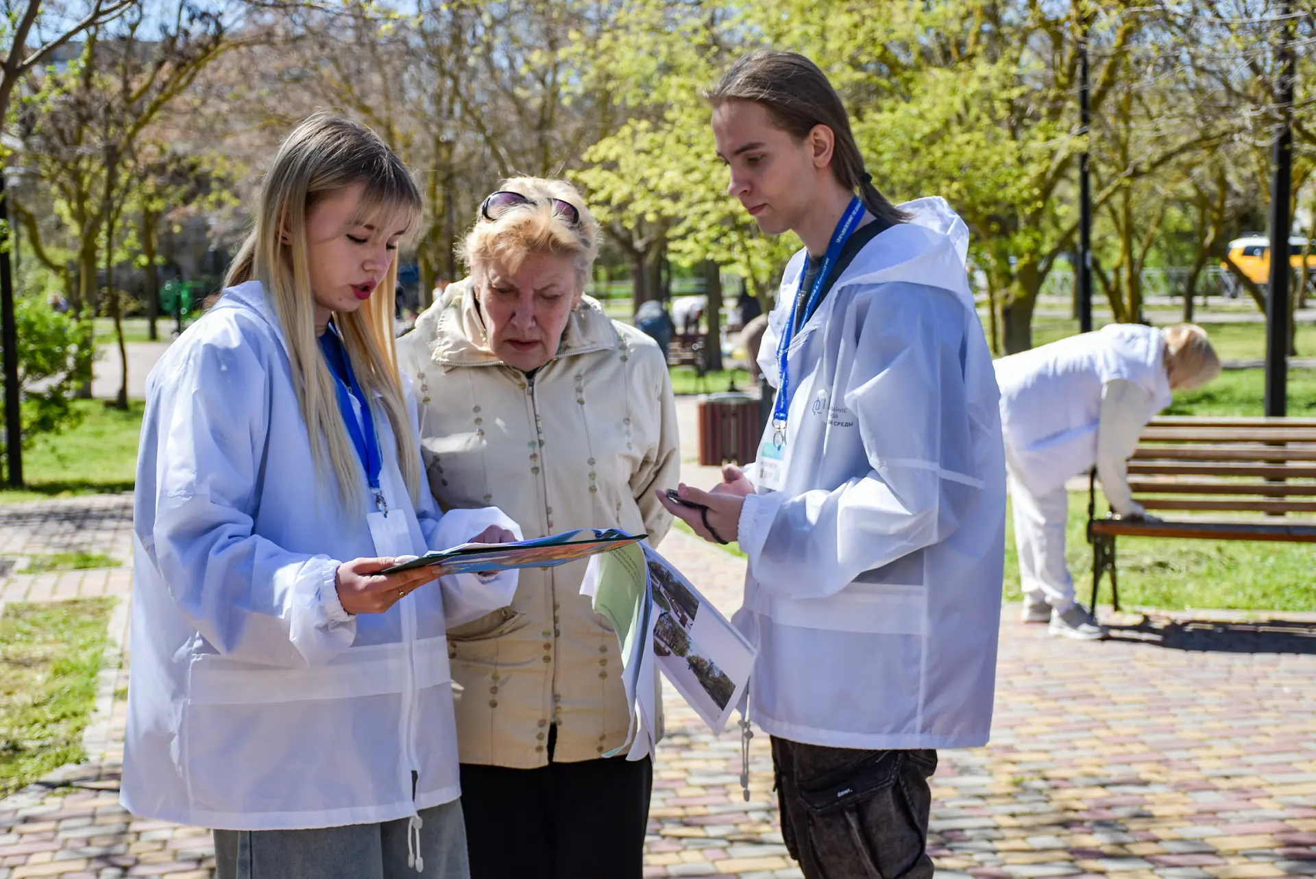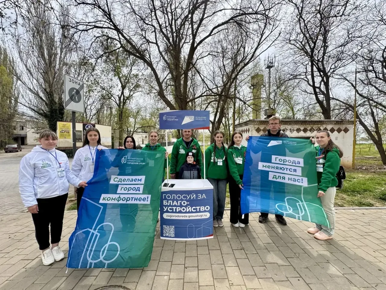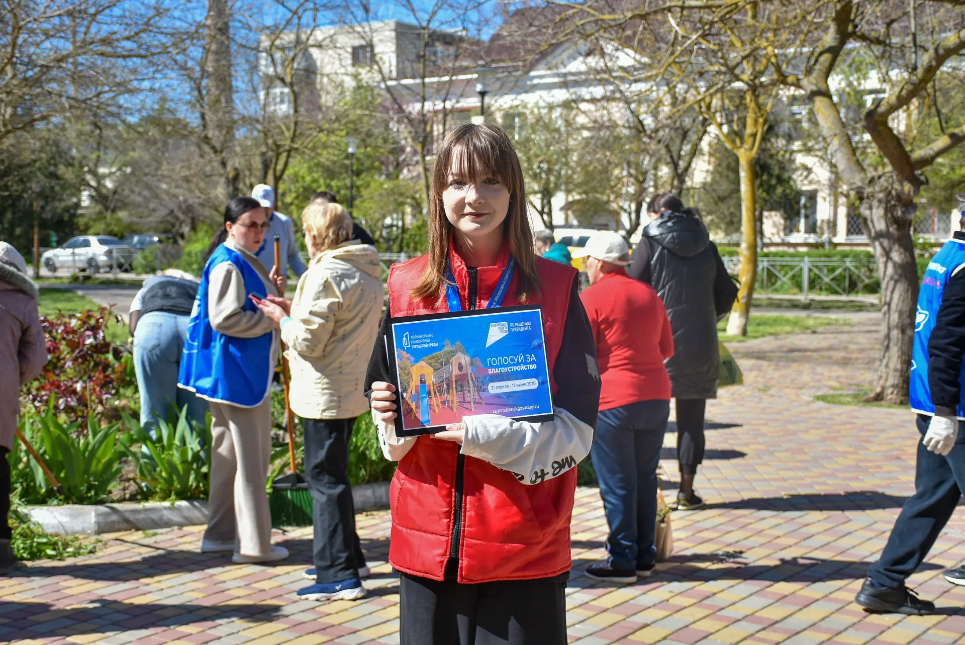 На субботник вышли и волонтёры Формирования комфортной городской среды. Они рассказали жителям о проектах, которые участвуют во всероссийском голосовании по благоустройству общественных пространств и помогли с голосованием.