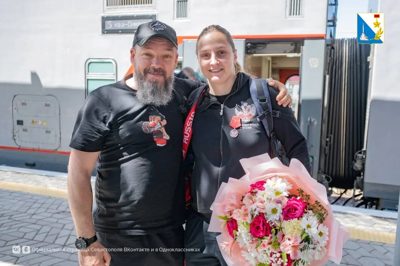 Встречали нашу чемпионку мира по боксу директор спортивной школы олимпийского резерва № 4 Олег Баландин и личный тренер спортсменки Руслан Давиденко.