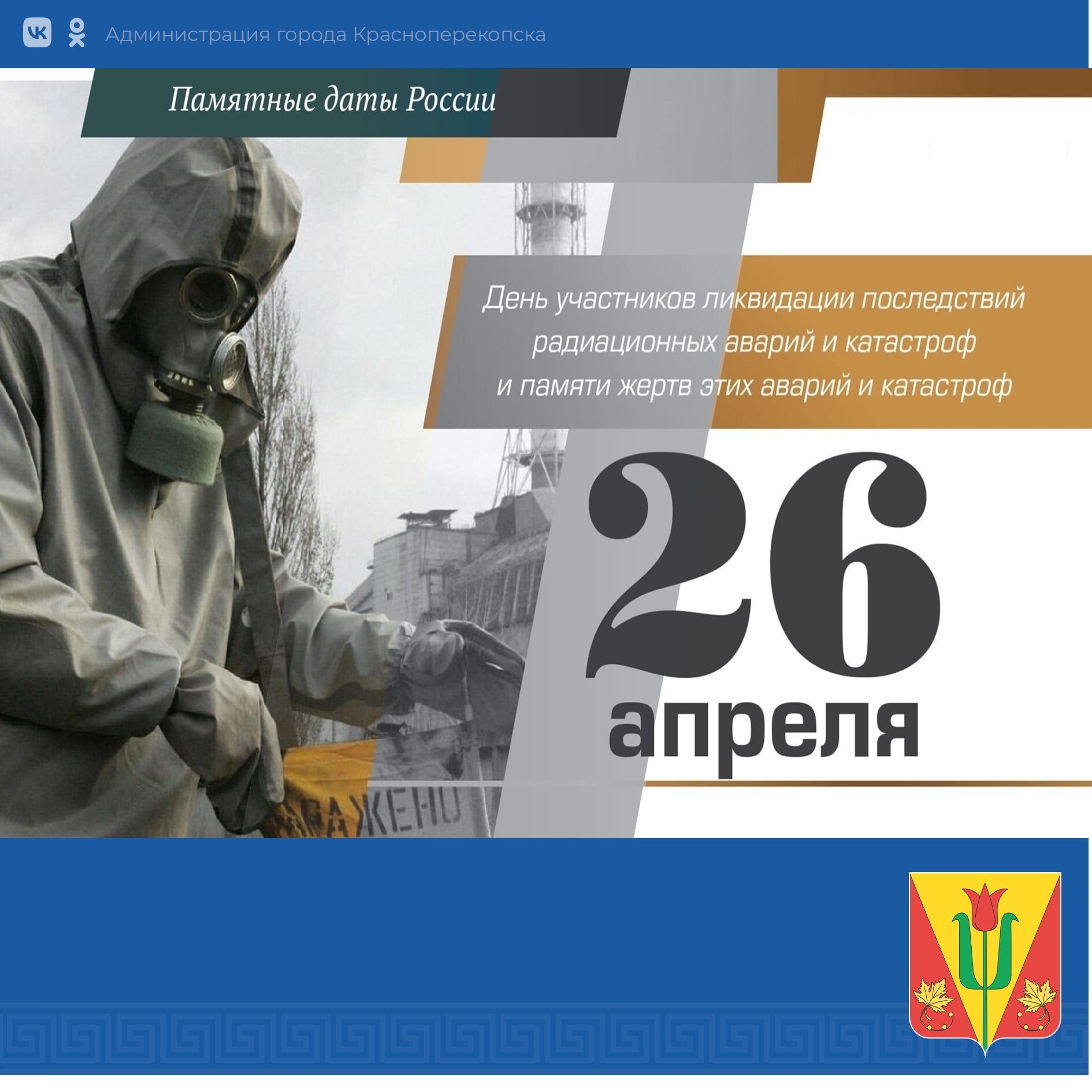 26 апреля – День участников ликвидации последствий радиационных аварий и катастроф и памяти жертв этих аварий и катастроф.