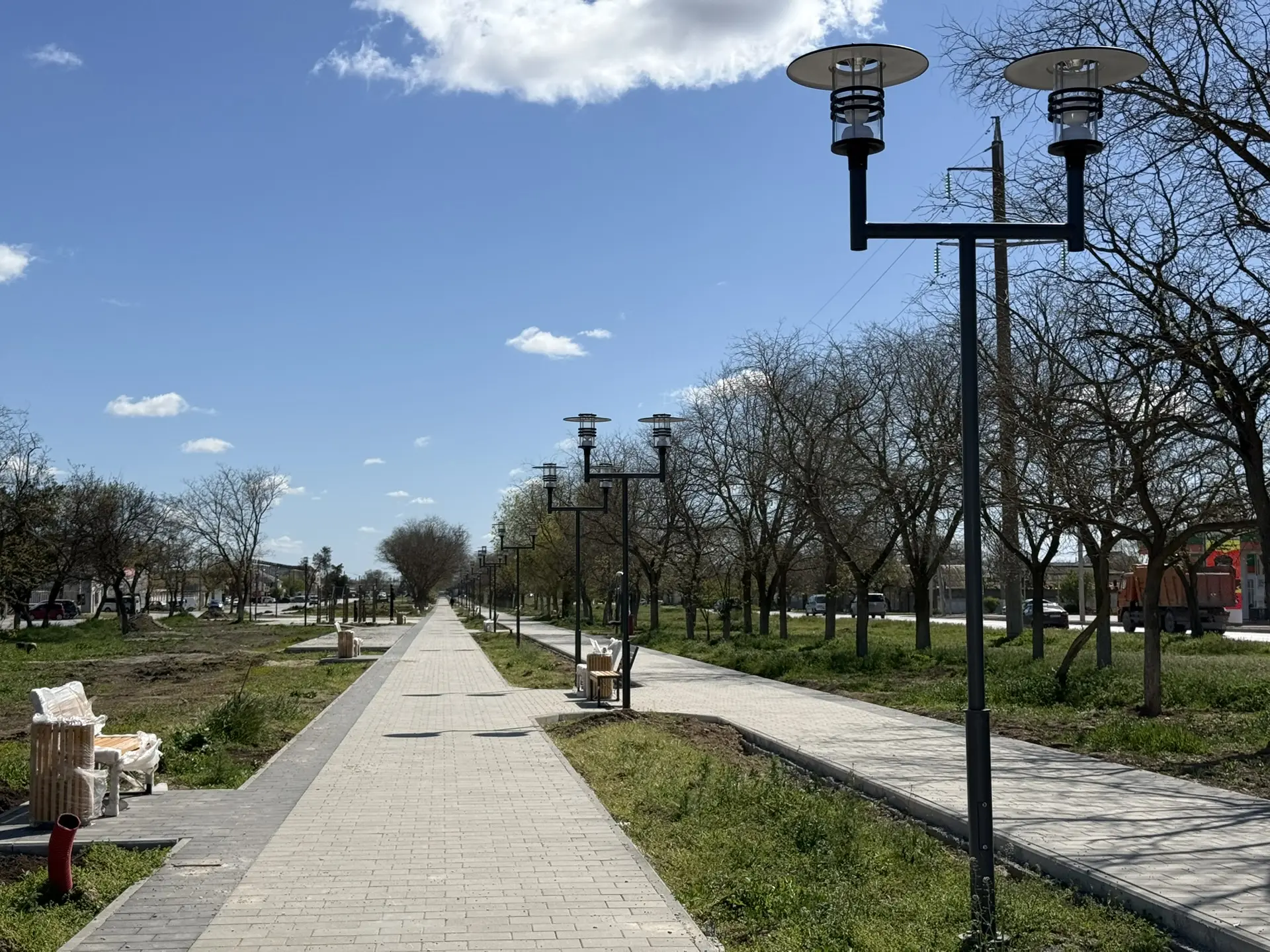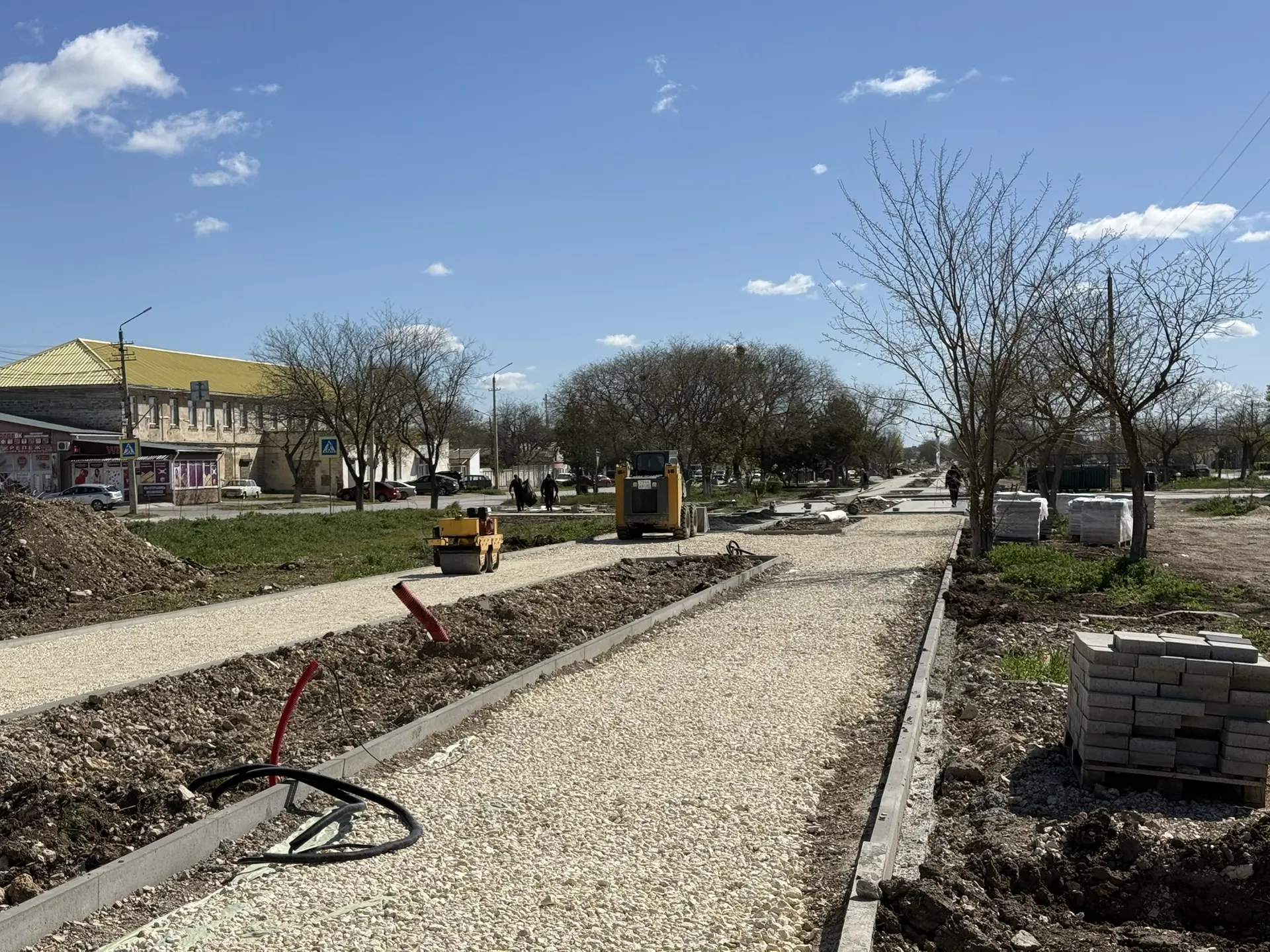 Продолжается благоустройство аллеи на улице 2-й Гвардейской Армии. Специалисты готовят основание и кладут тротуарную плитку, устанавливают малые архитектурные формы, детские игровые комплексы и выполняют другие виды работ.