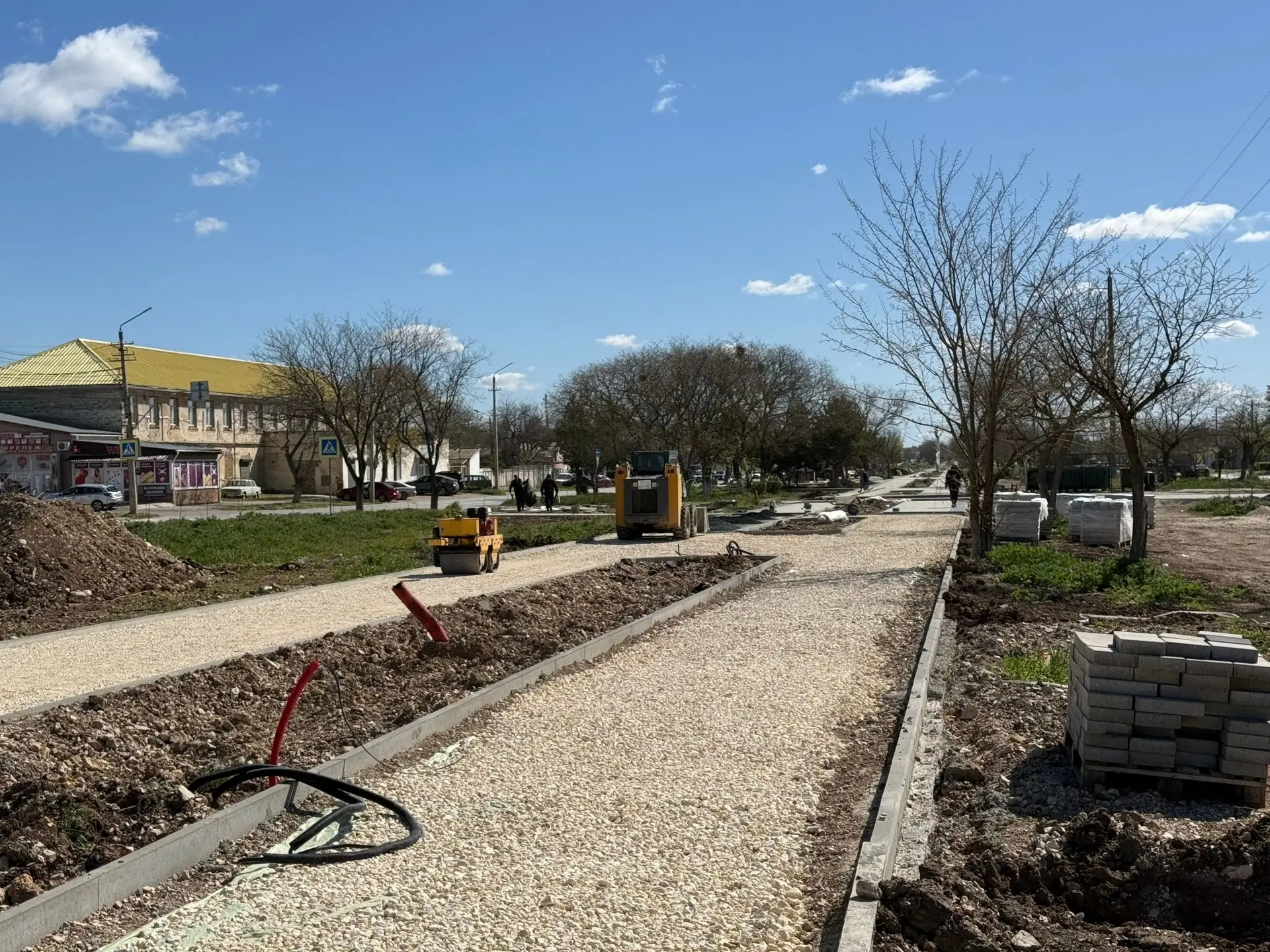 Также продолжается благоустройство аллеи на улице 2-й Гвардейской Армии. Сейчас специалисты готовят основание и укладывают тротуарную плитку, устанавливают малые архитектурные формы, детские игровые комплексы и выполняют другие виды работ.