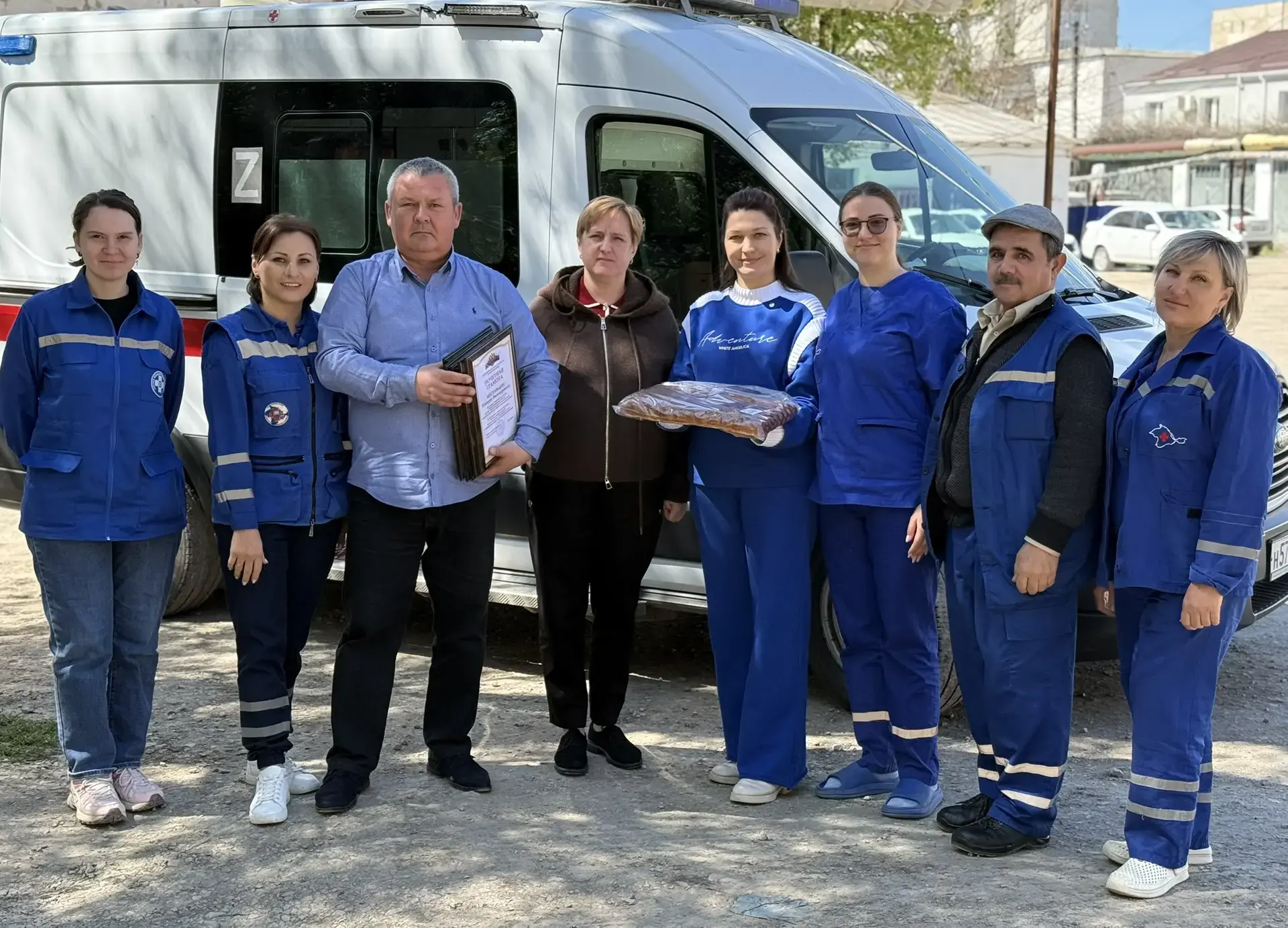 Поздравления коллективу скорой медицинской помощи передала мой первый заместитель Жанна Хмур.
