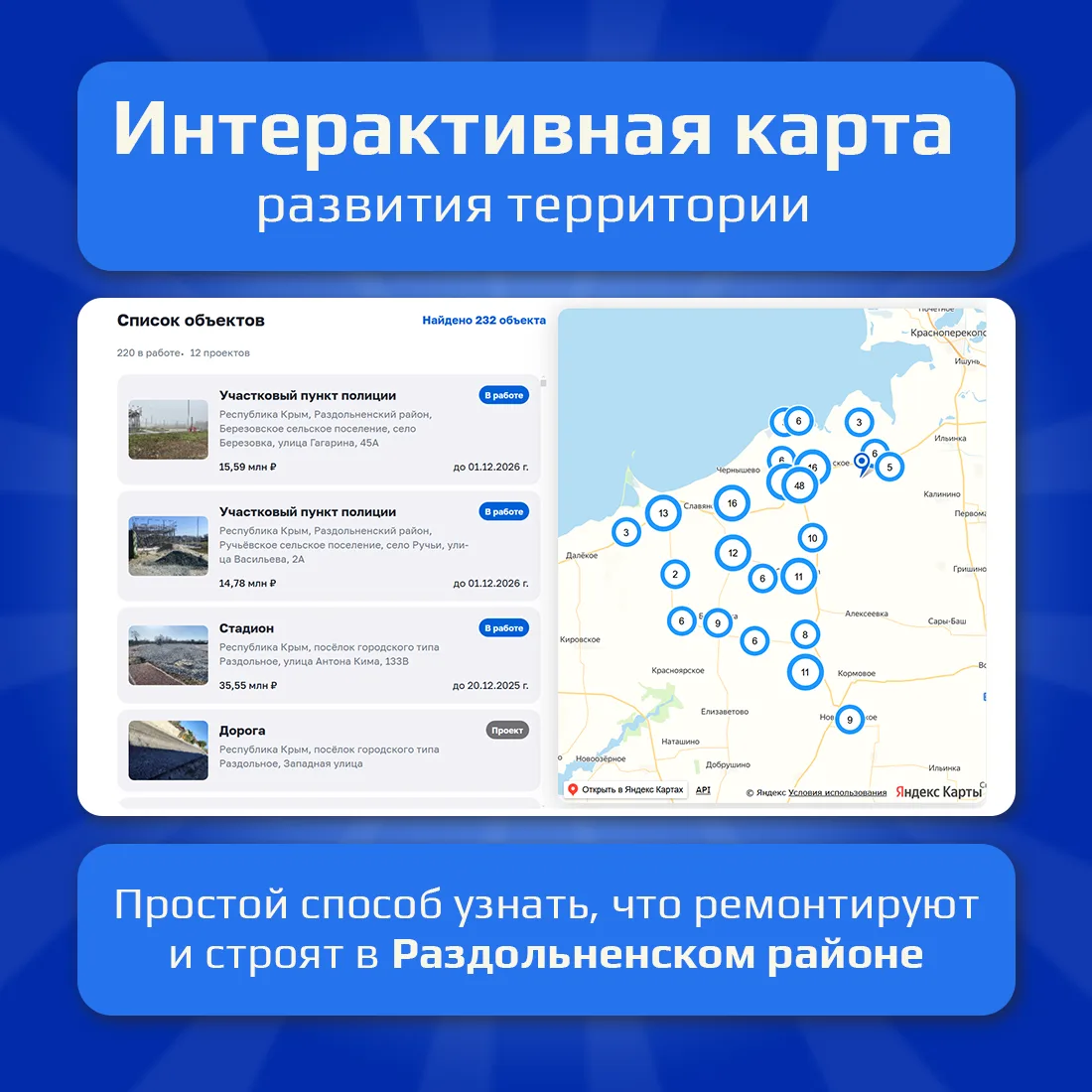 Крымчанам доступна интерактивная карта развития территорий муниципальных образований