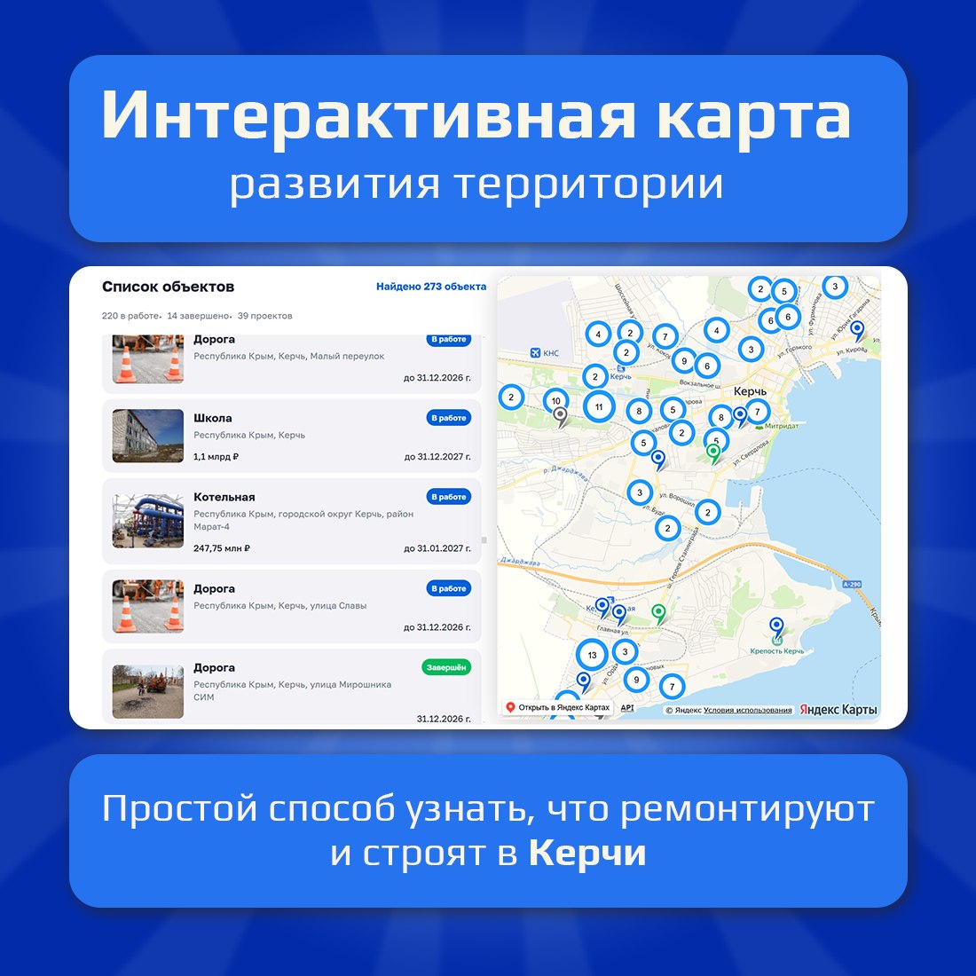 Жители города-героя Керчи могут самостоятельно контролировать выполнение проектов благоустройства и строительства на территории района, воспользовавшись интерактивной картой по ссылке https://clck.ru/3TLJ9z
