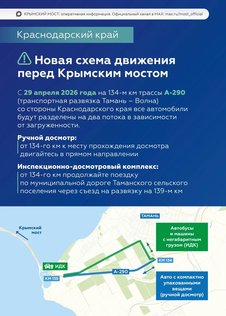 Транспорт с негабаритным грузом и пассажирские автобусы направят на муниципальные дороги Таманского сельского поселения — съезд на 139мкм, для аппаратного досмотра.