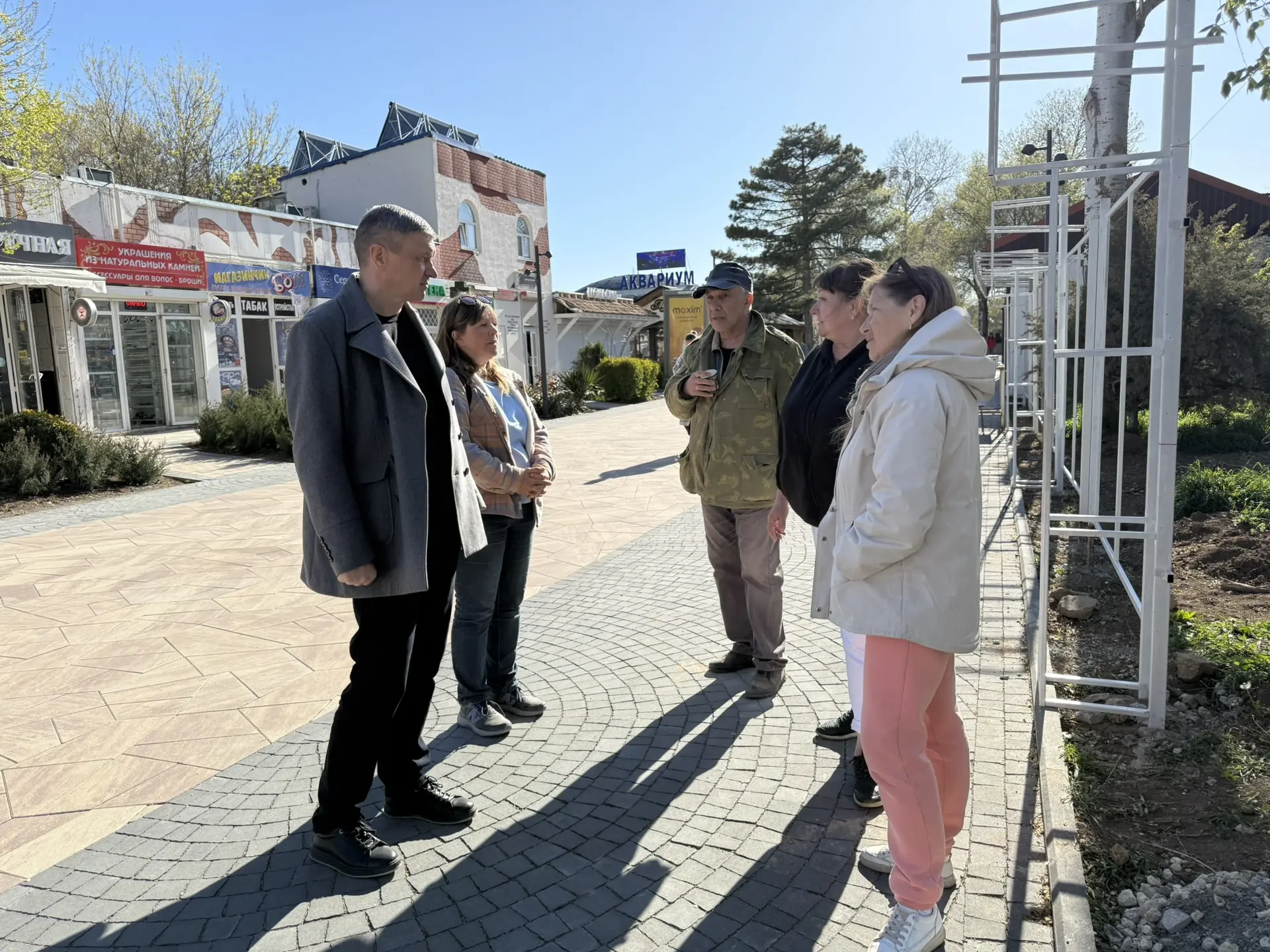 На набережной им. Горького бываю очень часто, сегодня в очередной раз проверил ход ремонта. Участок, на котором уже выполнено озеленение, поливается с помощью системы автополива, специалисты продолжают укладку тротуарной плитки. Предприниматели активно готовят свои торговые точки к летнему сезону. Пообщался с художниками, которые представляют свои работы на вернисаже, расположенном на набережной. Обсудили актуальные вопросы, договорились об алгоритме их быстрого решения.