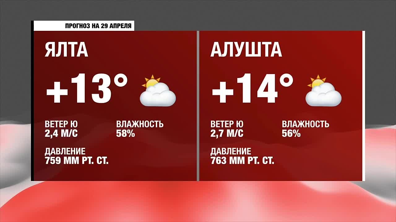 В Симферополе +15 и облачно с прояснениямиВ Севастополе +14 и облачно с прояснениямиВ Евпатории +14 и облачно с прояснениямиВ Черноморском +13 и пасмурноВ Джанкое +15 и облачно с прояснениямиВ Ялте +14 и облачно с прояснениямиВ...