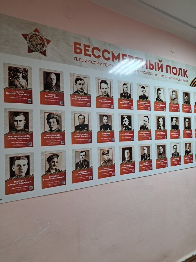 Особое место в экспозиции занимают фотографии жителей, внесших значительный трудовой вклад в развитие сельского поселения. На стенде «Бессмертный полк. Участники ВОВ 1941-1945 гг., уроженцы Крыма» представлены крымчане, Герои Советского Союза.